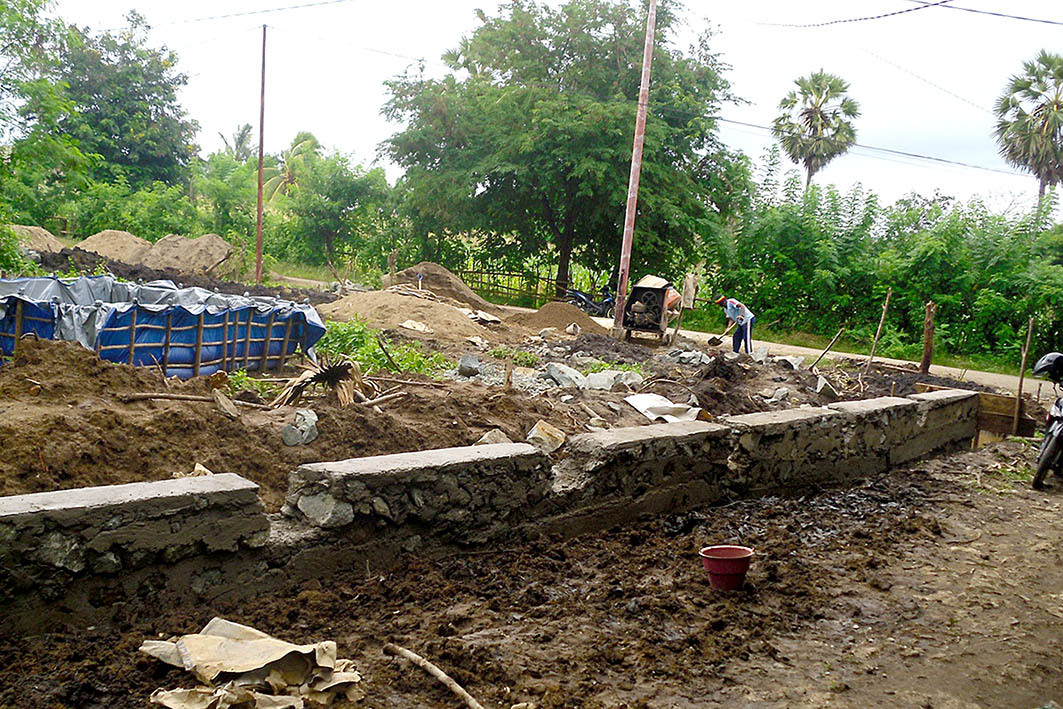 View photos of the laying of the fence foundations, January 2012.