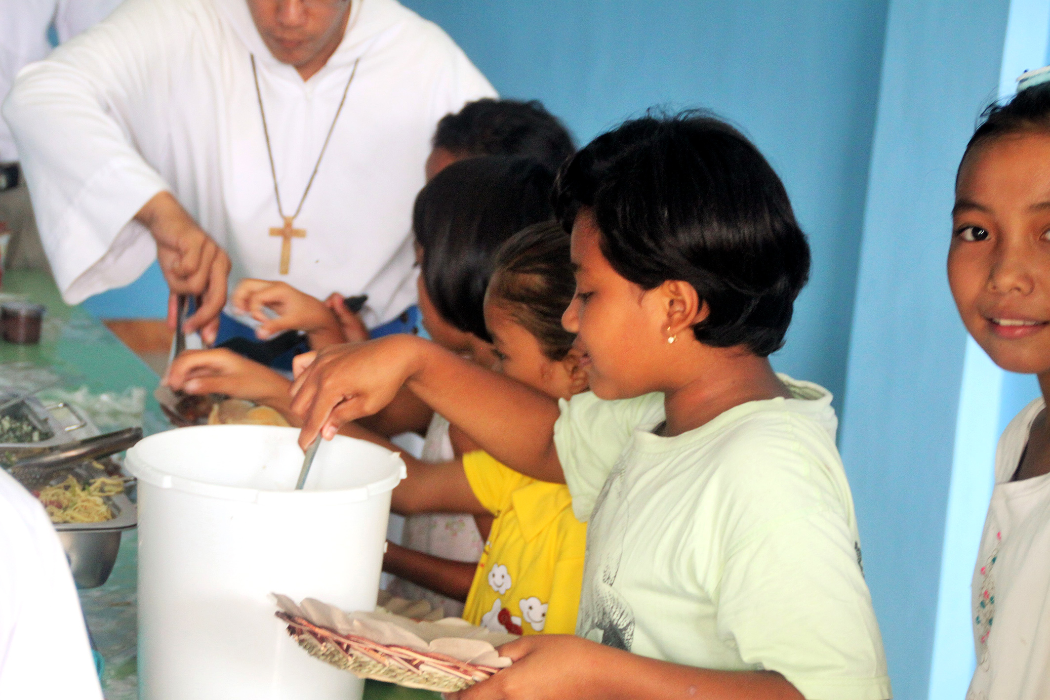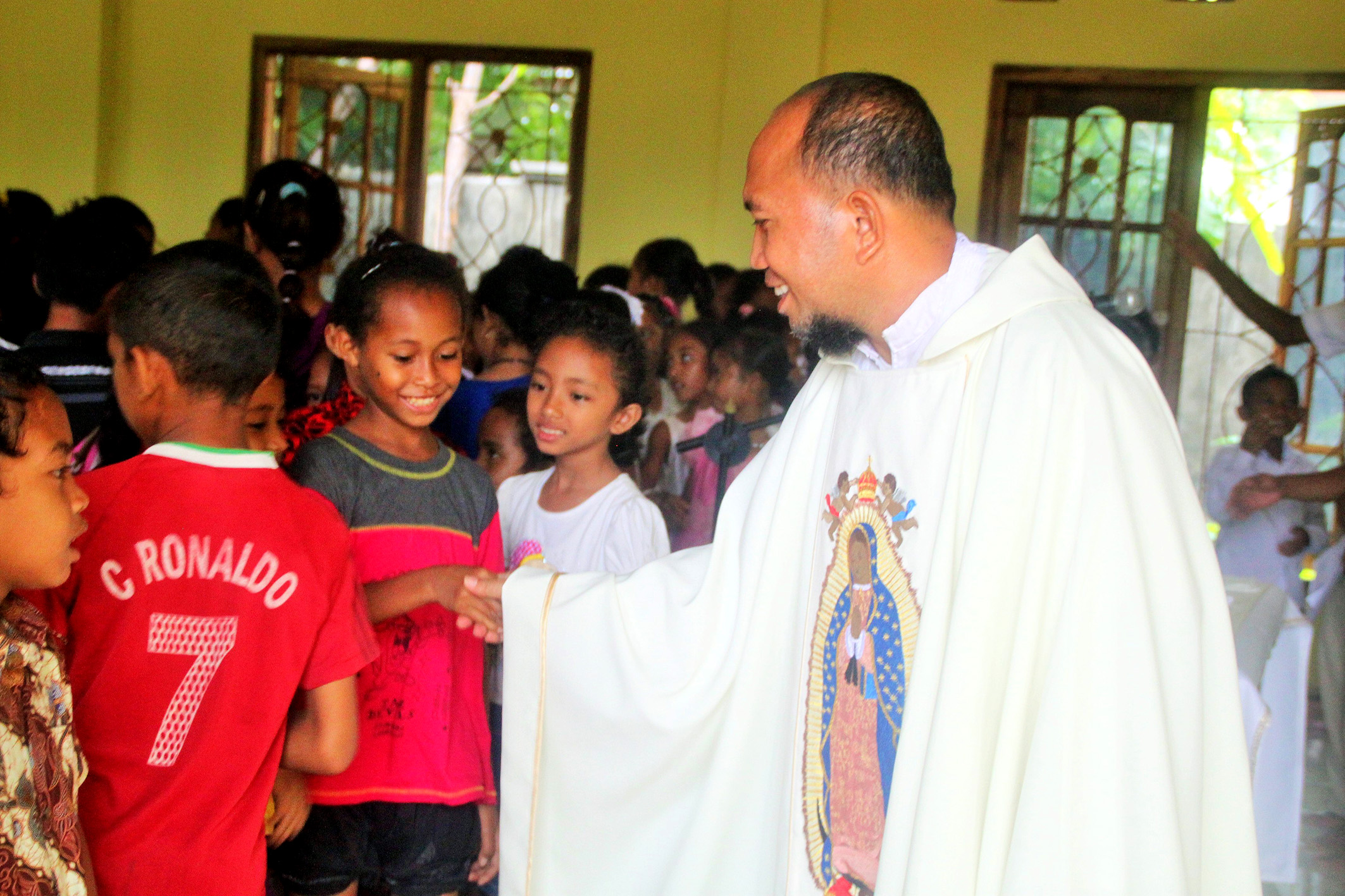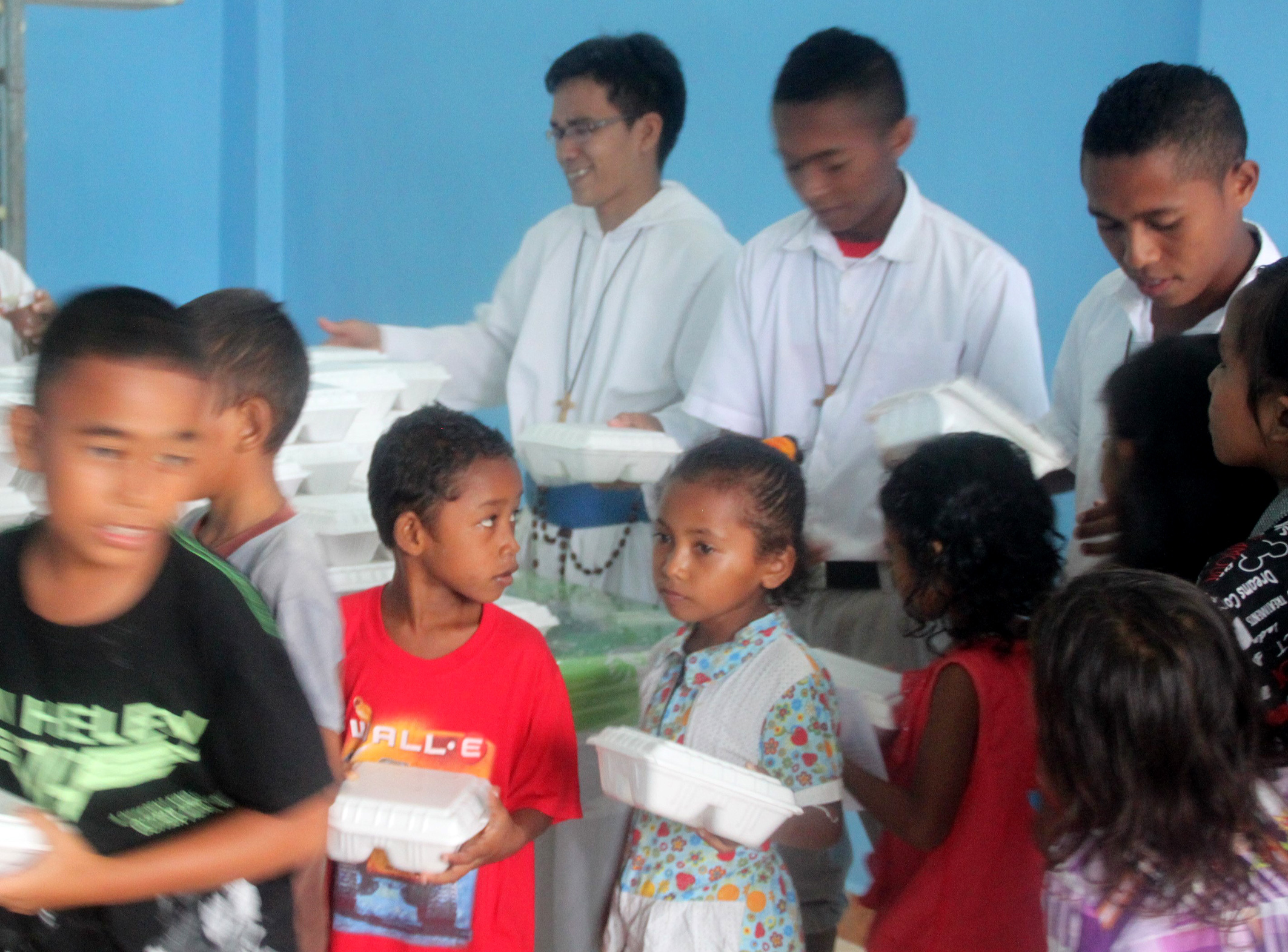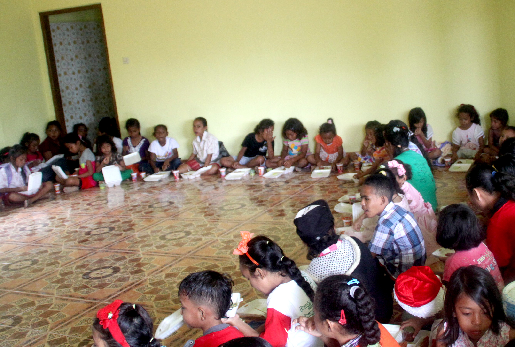 “This Christmas we had a very successful Christmas tree. The children were really happy and had plenty of fun and of course enough gifts. Our gifts this year were kindly supplied by Chris and MaryAnn Argall of Brisbane. You can imagine what joy these generous gifts contributed to these many kids. The celebration had its own problems. We had rain on that same day, the rain started at 9 am and went nonstop until 2 30pm. We had prepared a simple tent made of bamboo and tarpaulin. It all fell because of the heavy rain and we had to bring all the children to the apostolate building. As you can see in the photos they are squeezing into one room during mass time but during lunch and gift distribution we used several rooms (where the children are sitting down). Due to the rain we had only 237 children on the 21st but many others came to the monastery the next day. We fed them and gave them gifts as well.” – Bro. Emmanuel Kagaba, Mission Superior