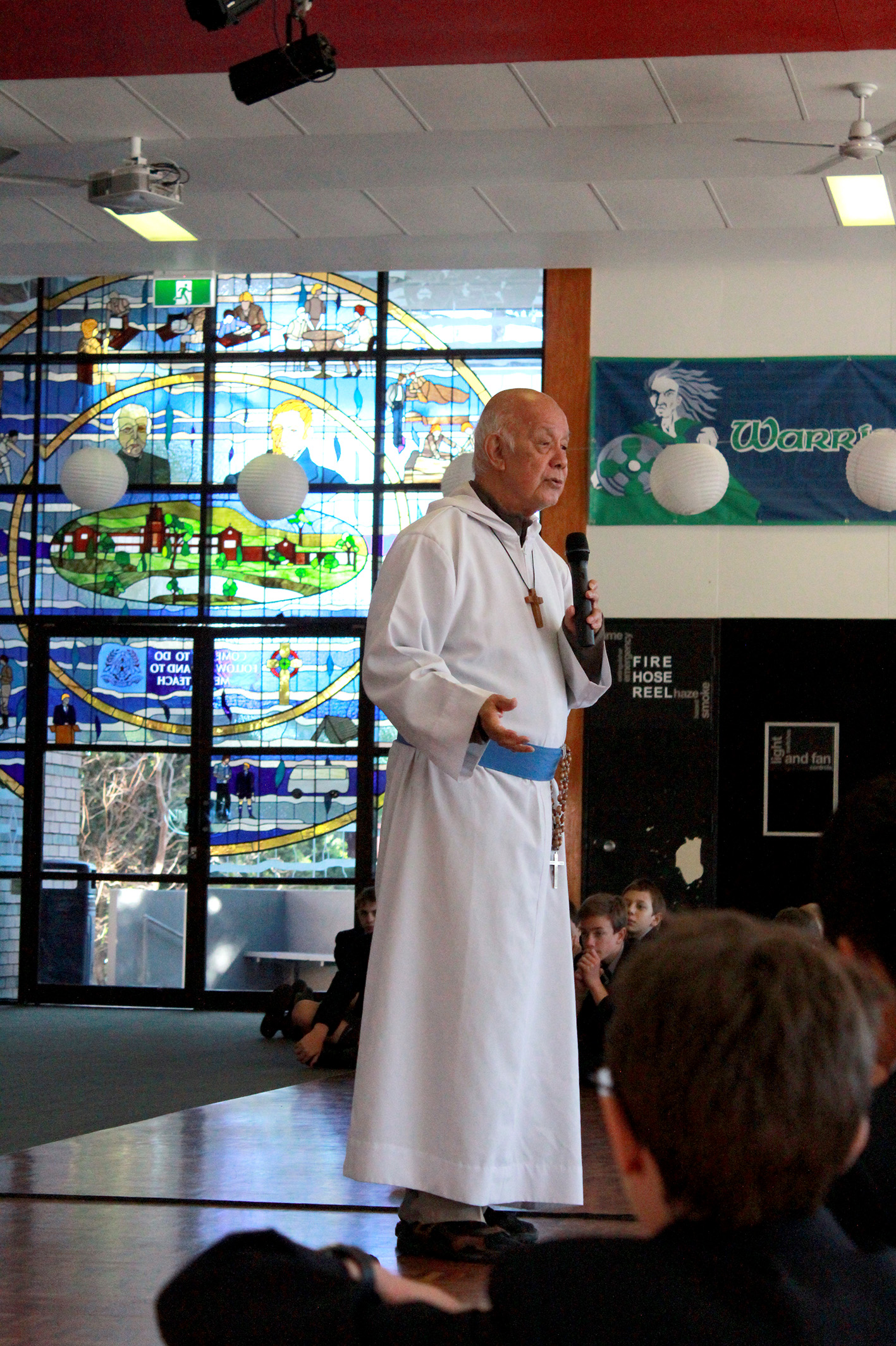 Visit by Fr Ho Lung to Ambrose Treacy College, Twigg St, Indooroopilly. On the morning of 14 July Fr Ho Lung addressed students of the middle school. Mr Conor Finn, Dean of Identity at the college, introduced Father, whose address was about the need and importance for every Christian to be grounded in service for the least of our brothers and sisters, just as Christ had served the poor and afflicted.