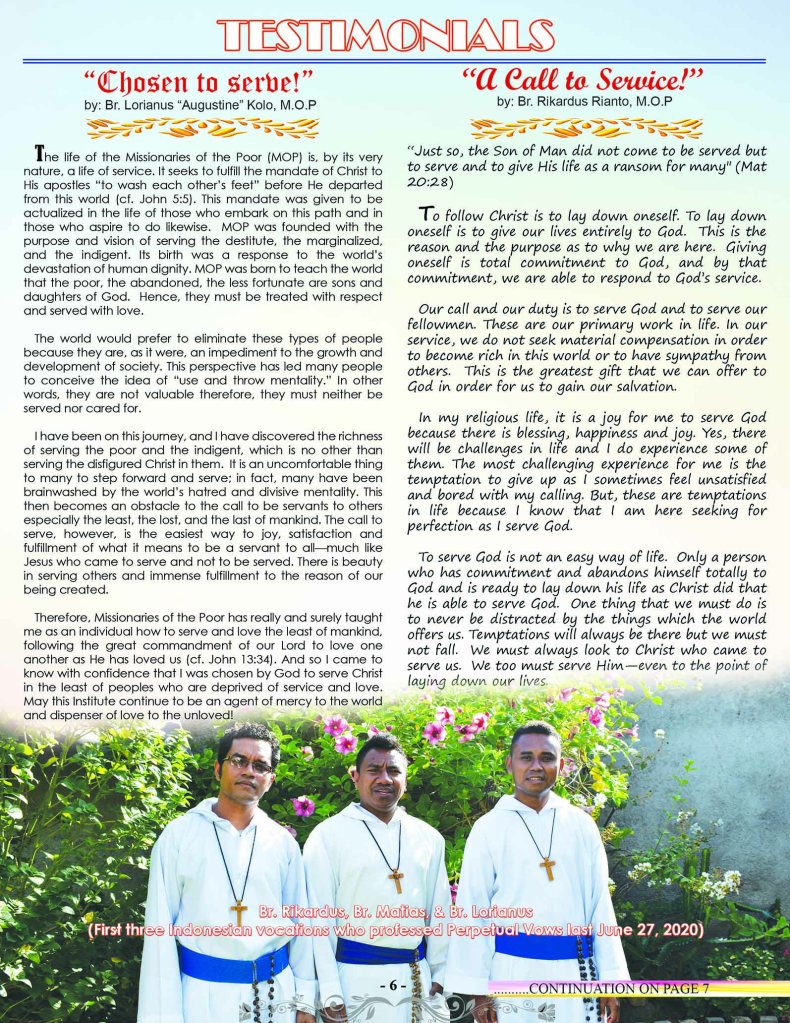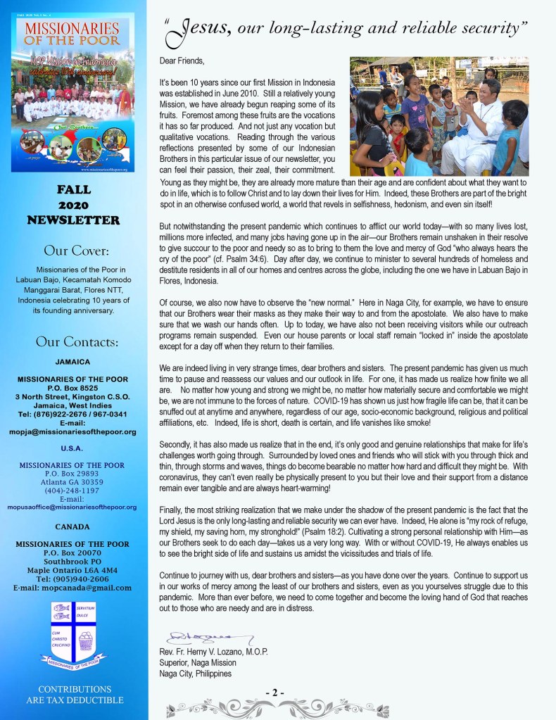 Another significant blessing for the mission has been the many vocations that have been received from local Indonesian boys joining the brotherhood, to work for the Lord. In a world that is primarily self indulgent, it is certainly counter cultural and pleasing to see such an outpouring of fervently Christ-centered young men. Thus it is fitting that the Mother House in Jamaica has dedicated their autumn newsletter in honour of the first 10 years of the Flores mission. We are sure that all the supporters here in Australia can feel proud of their contribution towards the mission over the last decade and feel honoured that Christ has chosen them to assist in his redemptive work.