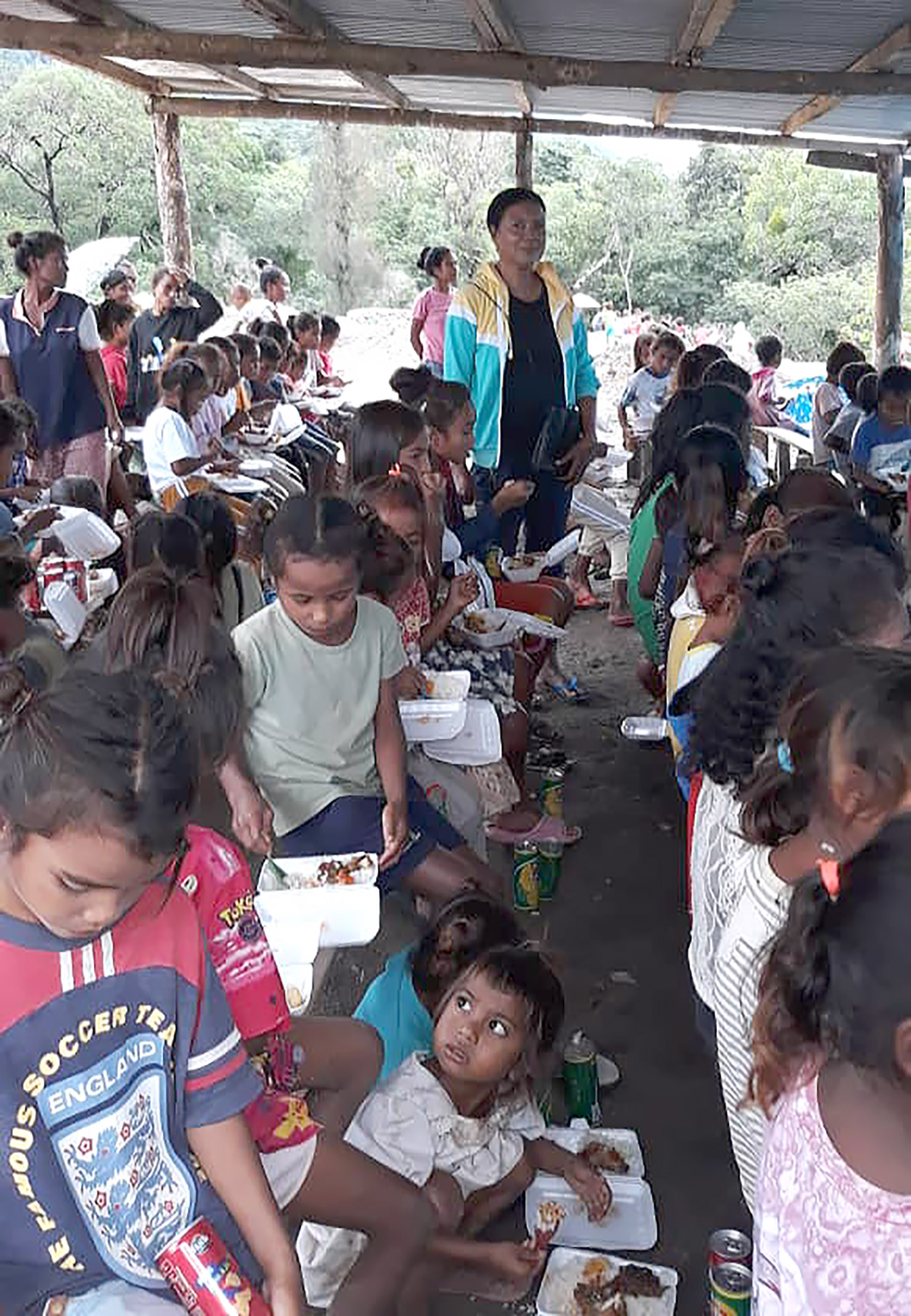 In addition, at Saburai, a Christmas feeding program was held for over 300 children, including a feeding program and distributions of food parcels for the elderly. We owe a big thank you to several donors in South Eastern Queensland, including Brisbane, that made the feeding programs and food parcel distributions possible through their generosity. Finally, we also thank all those who gave in-kind goods for the contents of the cartons.