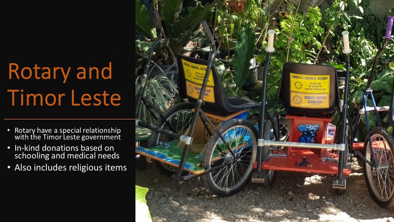 The following images were taken from the presentation that was made on the 11 July. We trust that this will provide a good update on the work involved in getting 24 cartons of supplies up to Dili. We take this opportunity to thank all those that assisted us with this, either with in-kind donations or provision of much needed funds.