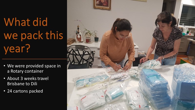 This year we have been preparing cartons of supplies to go in a Rotary container to the Maliana mission in Timor Leste.