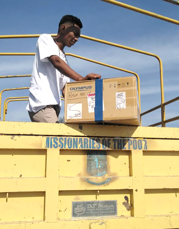 After port clearance it was opened and unloaded on the 7 February. Our consignment in the container for MOP was 16 cartons, which contained school supplies, medicines and toiletries, and religious items. Brothers Elmer and Giovanni made the trip down in the MOP truck from Maliana to Dili early that morning. Accompanying them were several aspirants who have recently joined MOP from neighboring villages. Br Nerlito, who is the new vocations officer for MOP Timor Leste, now has around 20 young men who have recently joined MOP.