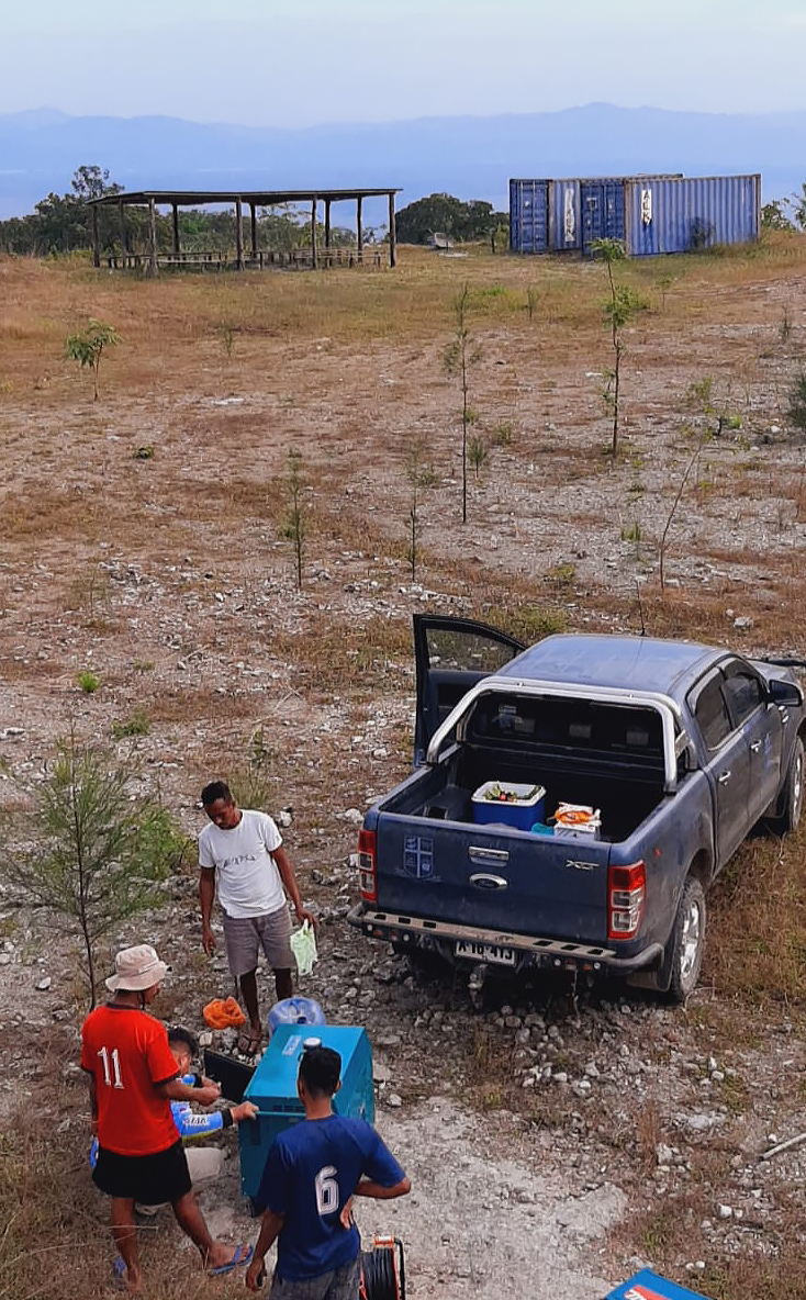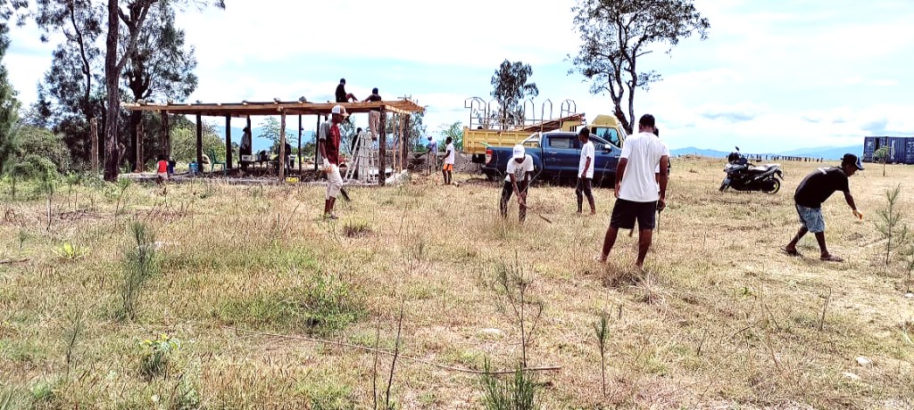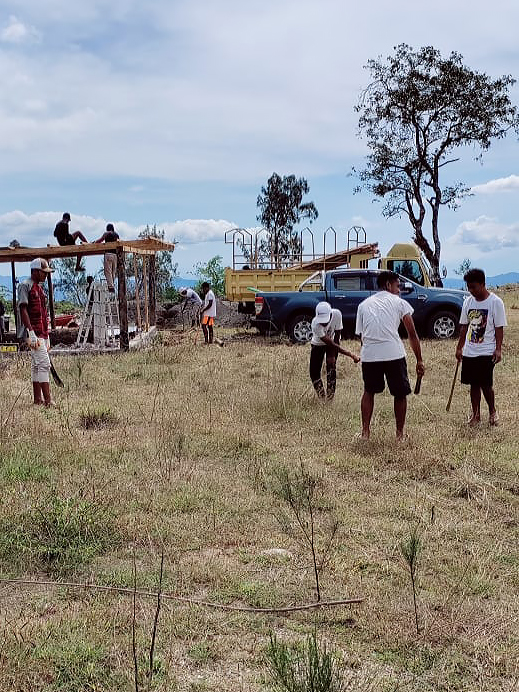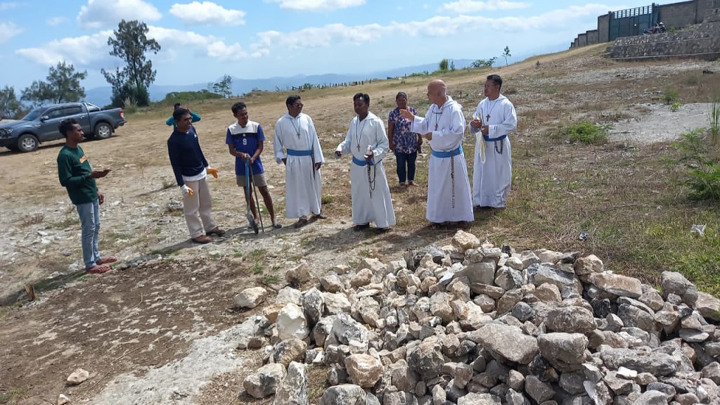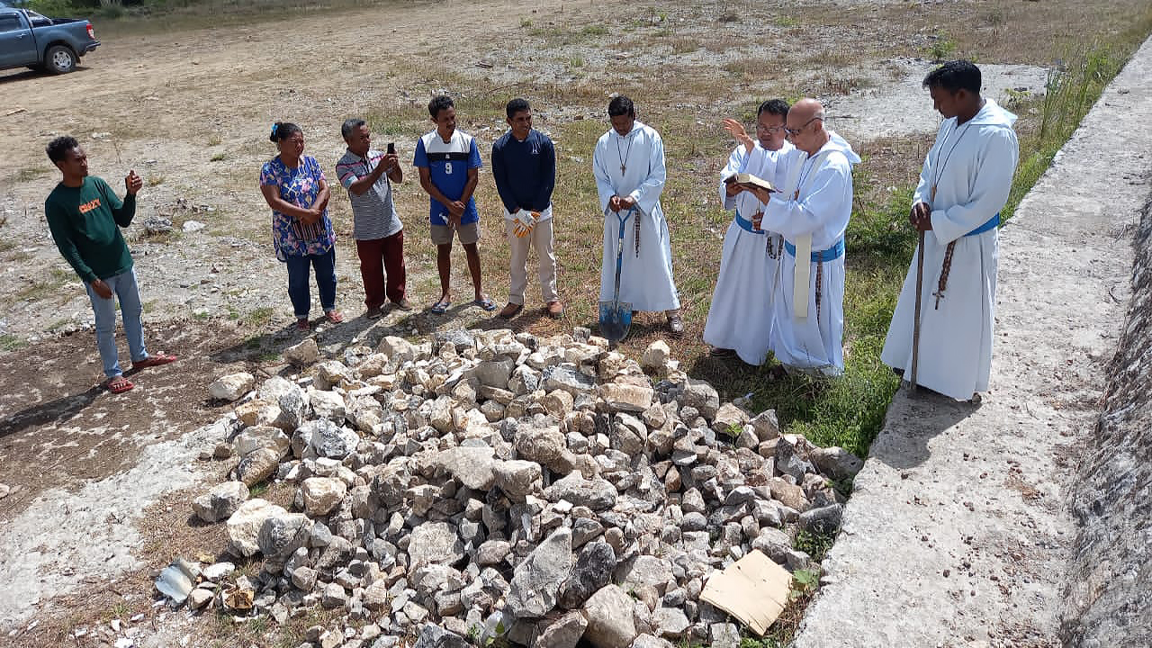 Several brothers have arrived from Jamaica who have building experience, and they will be supervising the building of the monastery/day use building. The land is levelled, with a terraced retaining wall on the upper side, and is totally surrounded by a boundary wall. The level section of the property where the building will be has been cleared of vegetation and the first turning of the soil was conducted by a surprising visitor to the Timor Leste mission. Yes, the Founder, the Very Reverend Fr Richard Ho Lung was returning from the Philippines in July and finally visited the two missions (Flores and Timor Leste) that he was still to visit. Now that the official turning of the soil has been done and the property is blessed, building will now commence.