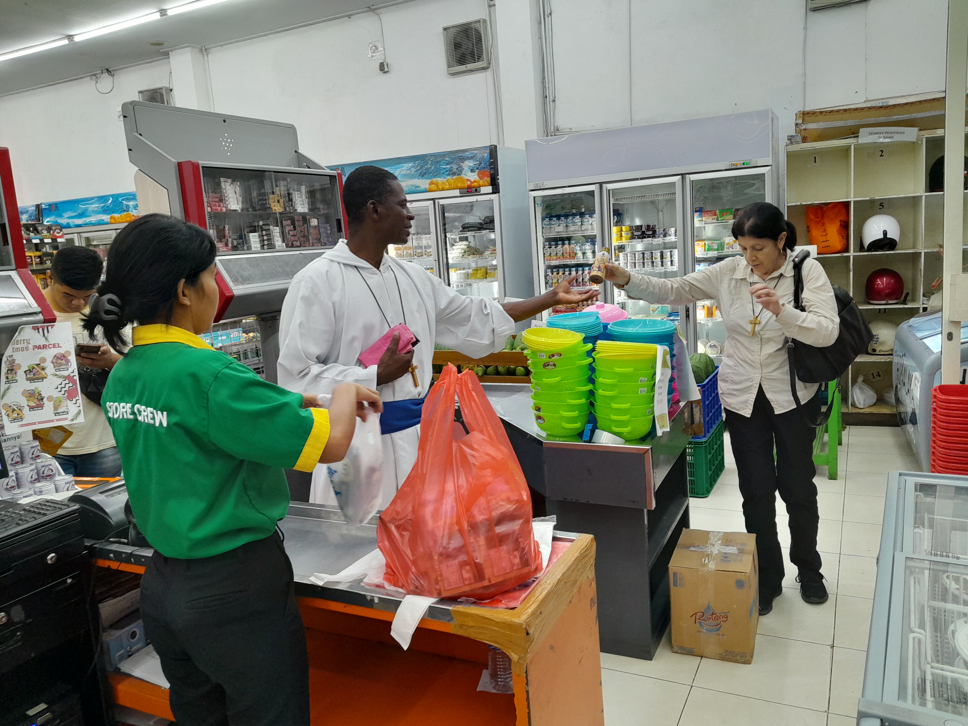 Br Johnny out and about purchasing groceries for the Christmas feeding program