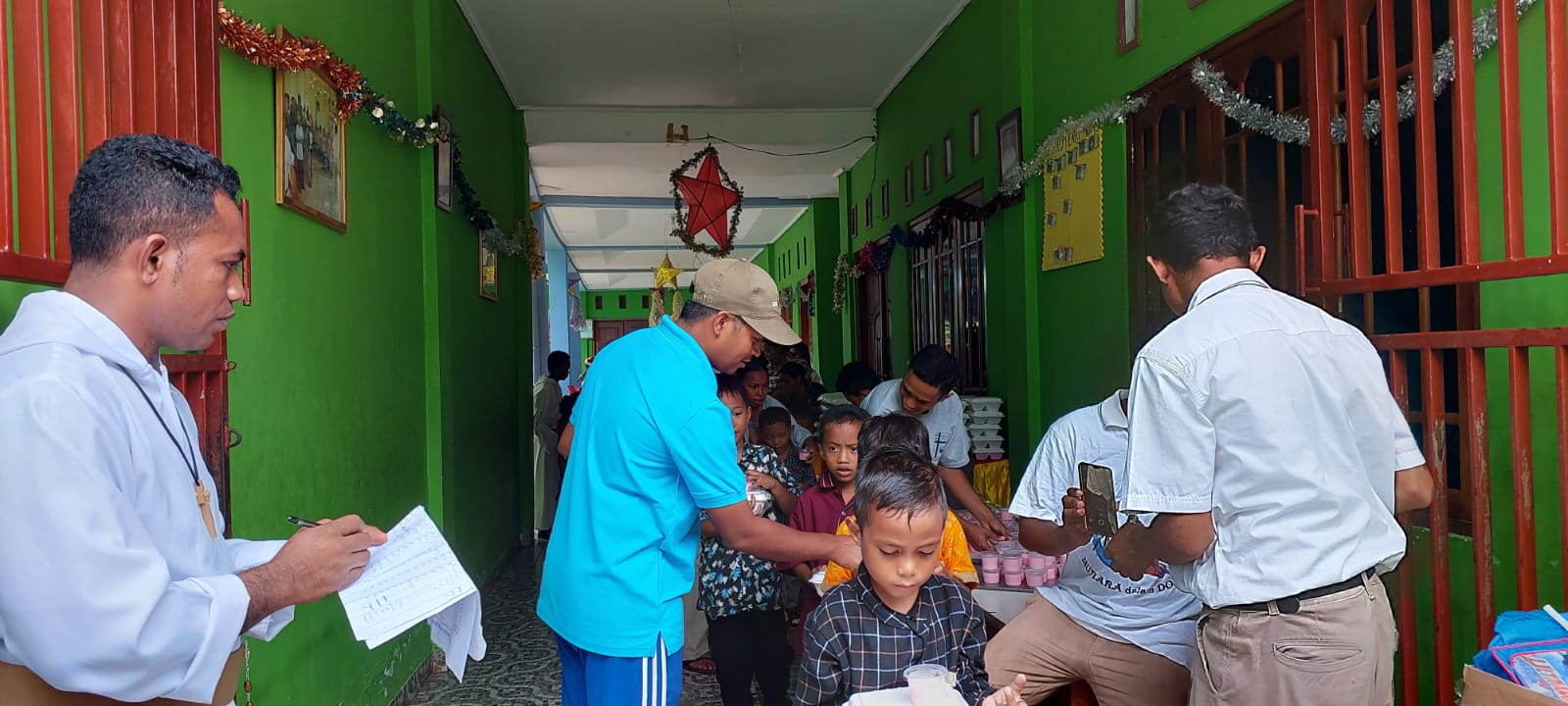 A happy New Year to you with many blessings. Through some generous support the mission in Flores was able to sponsor a feeding program Christmas event for around 500 local children.