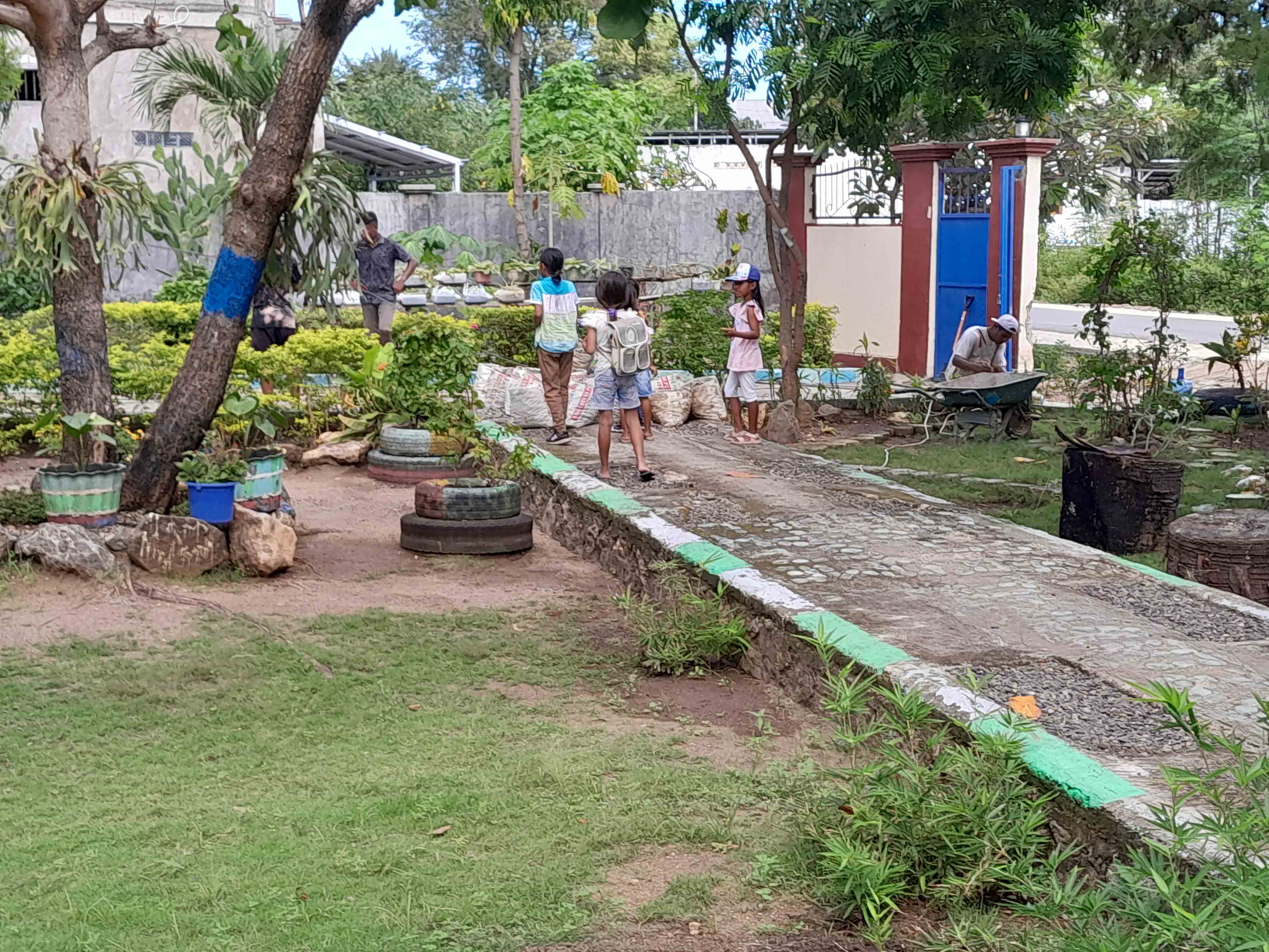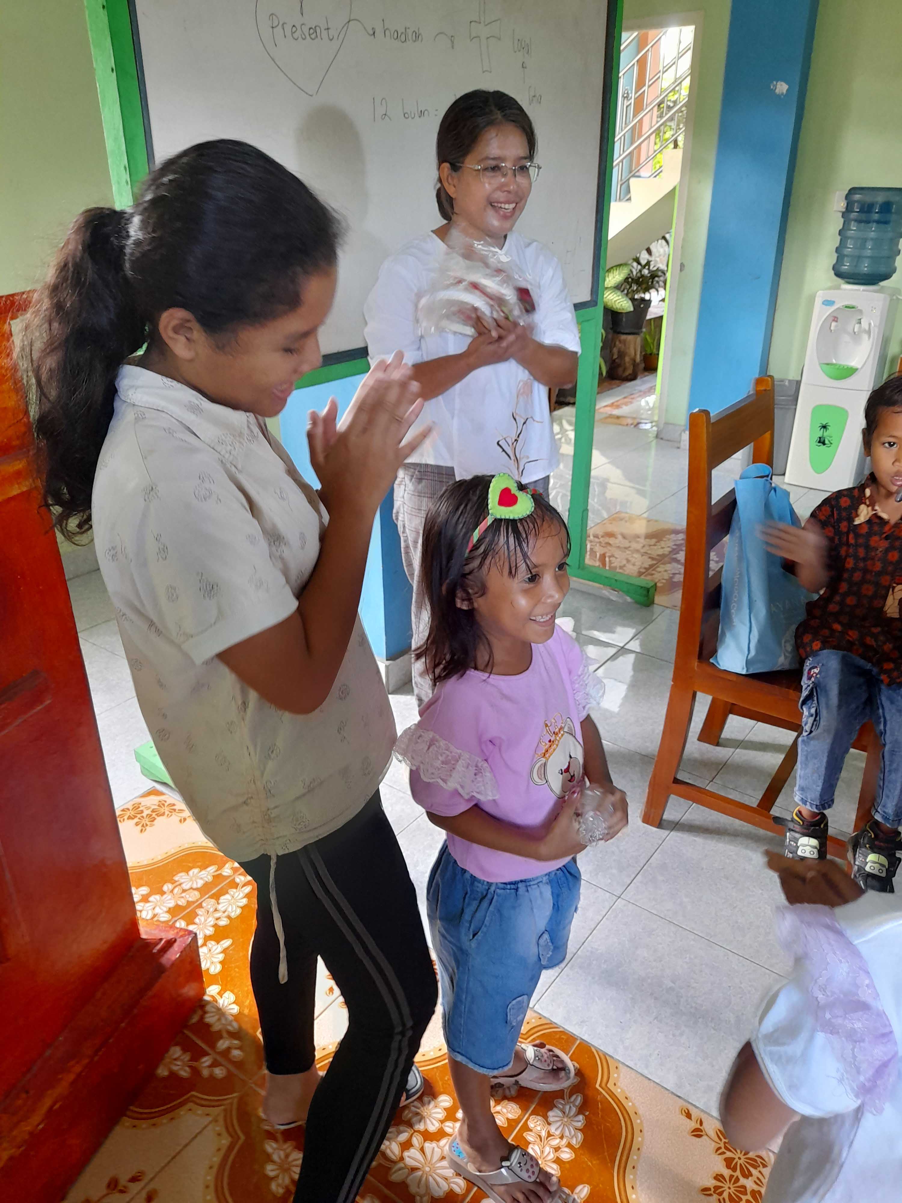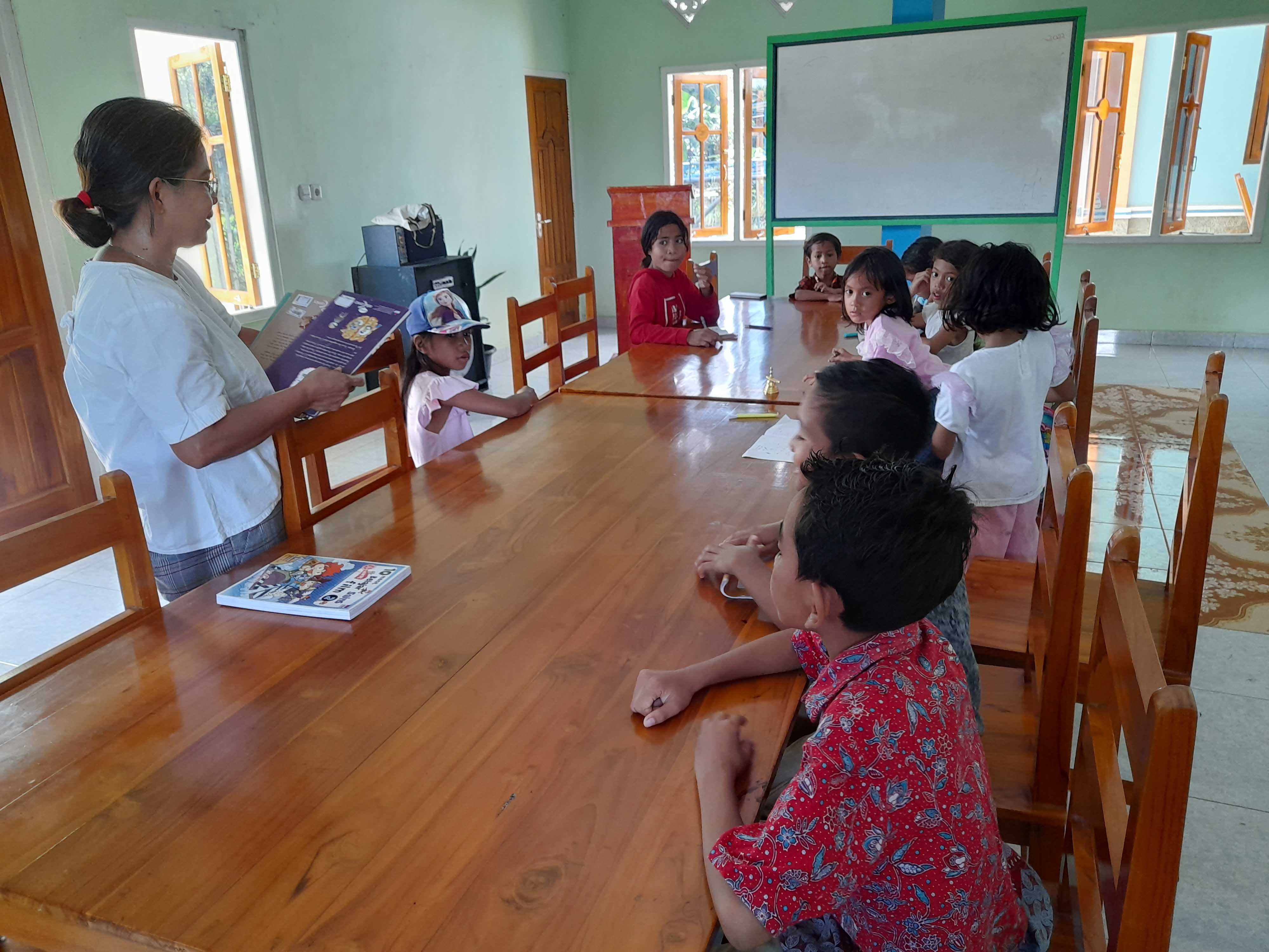 The local children come and are taught English and some catachesis by a local lady named Erlin Imelda who, with her husband, Layu run a lovely bed and breakfast in Labuan Bajo called PaVilla. She volunteers every week to teach the children and she has been helping with these classes for the last 12 months. Compliments of the Australian visitors, on the Sunday of 3 December, the children were treated with some gifts of school stationery.