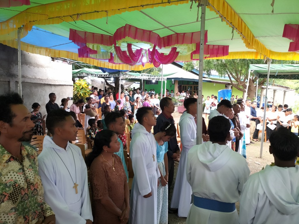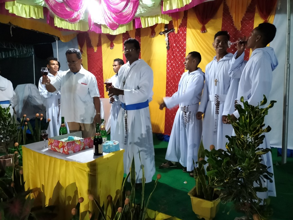 One of the highlights of being with the brothers in Maliana (Timor Leste) was witnessing eight young men entering postulancy and receiving their habits after completing eight months of discernment and prayer. This was their first commitment to follow Jesus through the emptying out of themselves and devoting their lives to live and work among the poorest of the poor, to bring them hope, love and joy. It was a very moving ceremony commencing with Holy Mass and shared with over four hundred members of family, friends, other religious sisters as well as members of the village. We all enjoyed a wonderful array of food, prepared by the brothers and other community members. This was followed by music and dancing which added to the joyous celebrations.