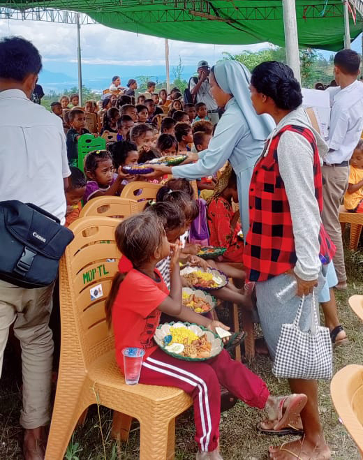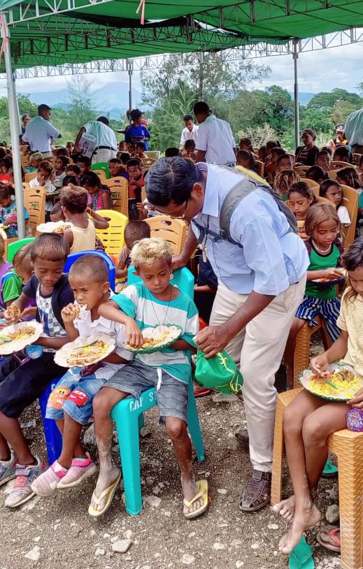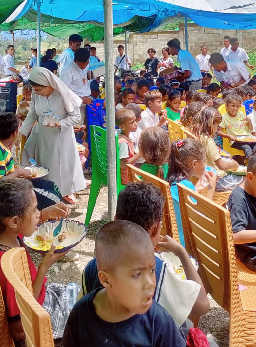 Saburai is roughly 9 km SSW of Maliana. The village is around 900 m above sea level and lies at the base of the Saburai Range. The brothers, based in Maliana outreach to the people of this village. All are extremely poor and the Christmas event is a highlight for the children of the village. These children receive no other gifts at all. So now that the cartons had arrived from Brisbane, Australia there were enough gifts to make the children of Saburai feel very special. Combine this with a feeding program on the day and lots of games, it made a very memorable day for the very poor children of the village.