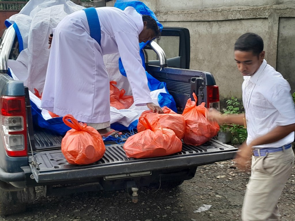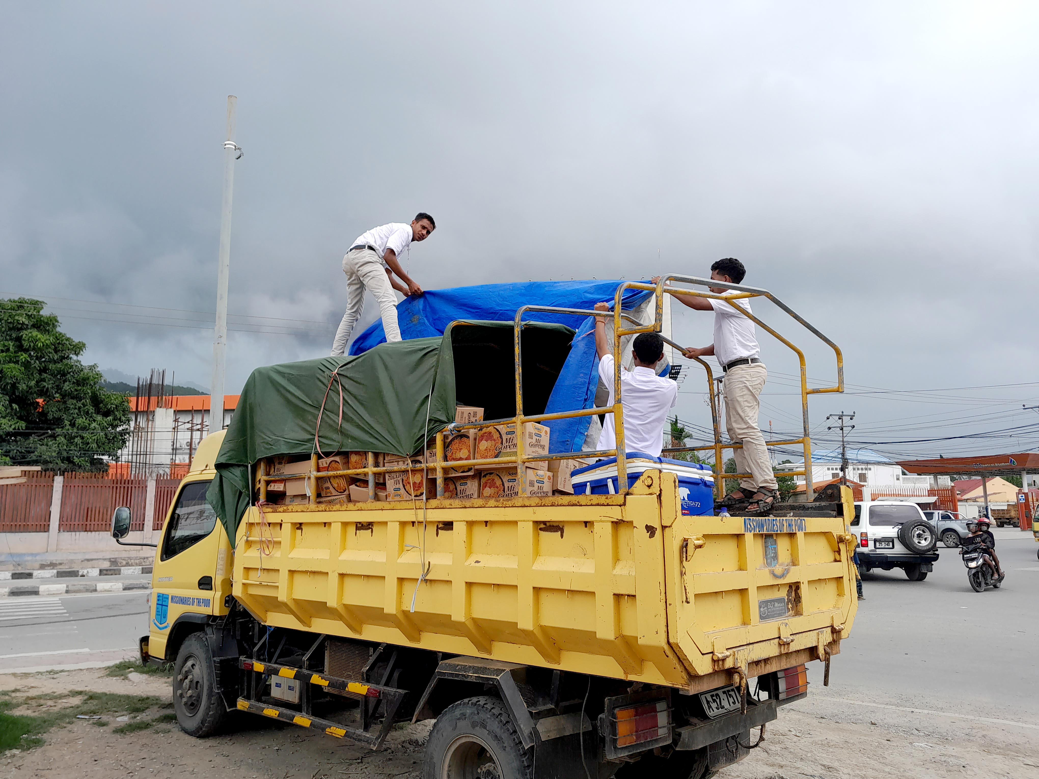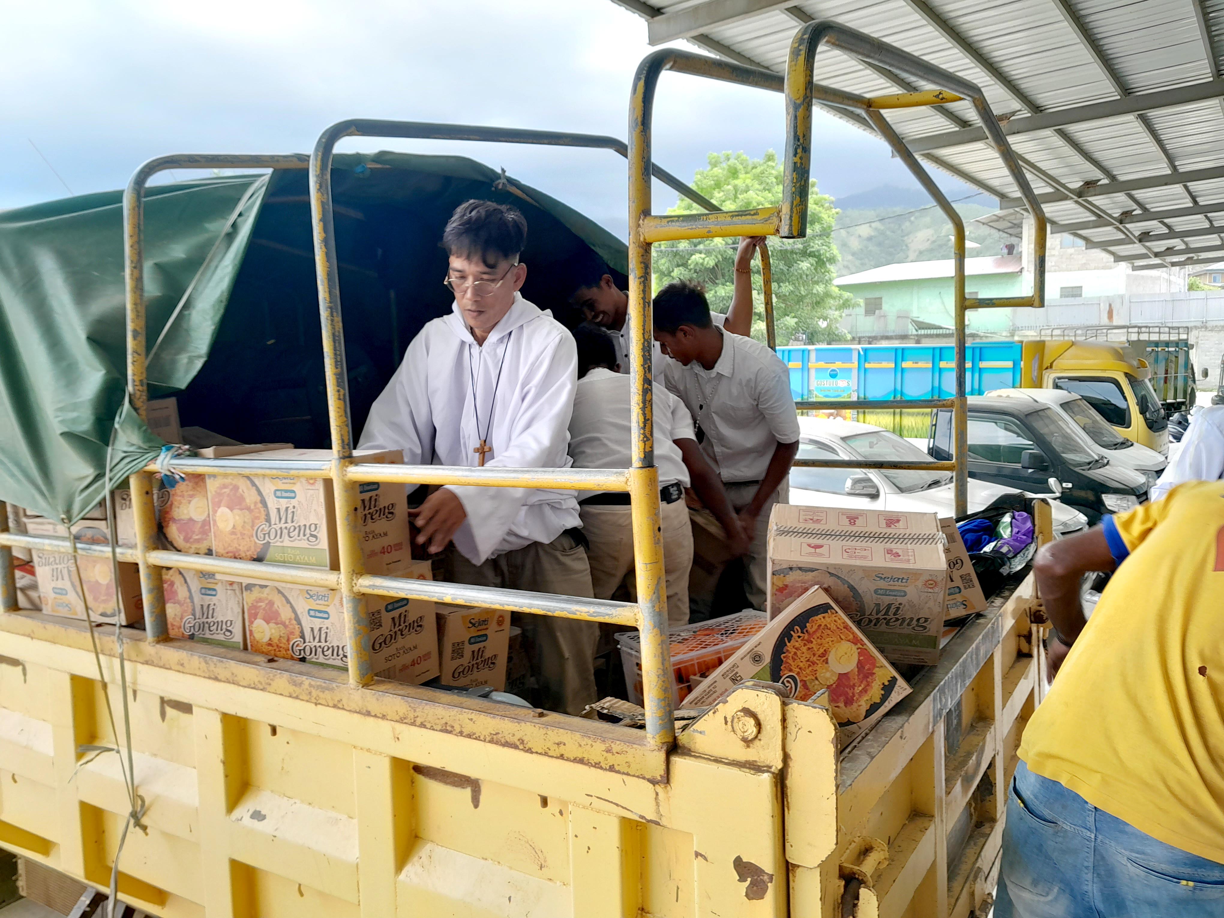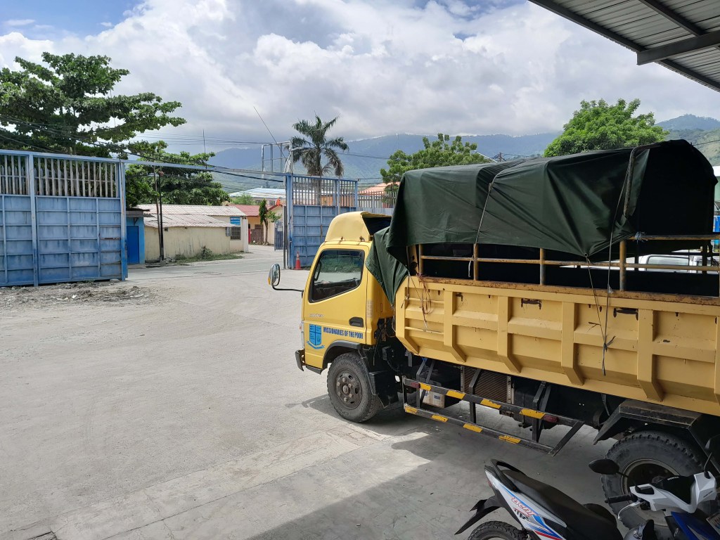 One of the tasks of his visit was to buy groceries from a supermarket wharehouse at Dili, for the MOP religious community, and for food parcel distribution to the very elderly and disabled in Maliana and in Saburai. After the flight into Dili was delayed four hours, due to bad weather, we eventually loaded the MOP truck with groceries and drove the four hours, mostly through rain, to the formation house in Maliana. The following day, the grocery items were bundled into food parcels and loaded into the back of the 4WD for distribution, firstly to Saburai and then several days later to Maliana.