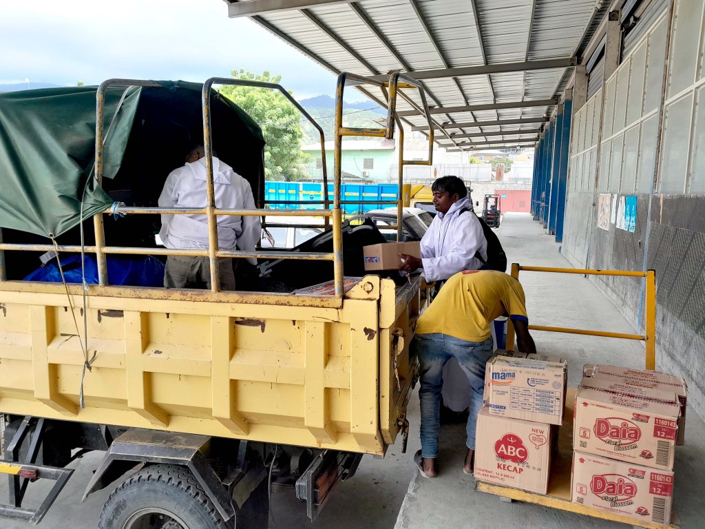 This post reports on arrival into Dili, the wharehouse visit and subsequent food parcel preparation.