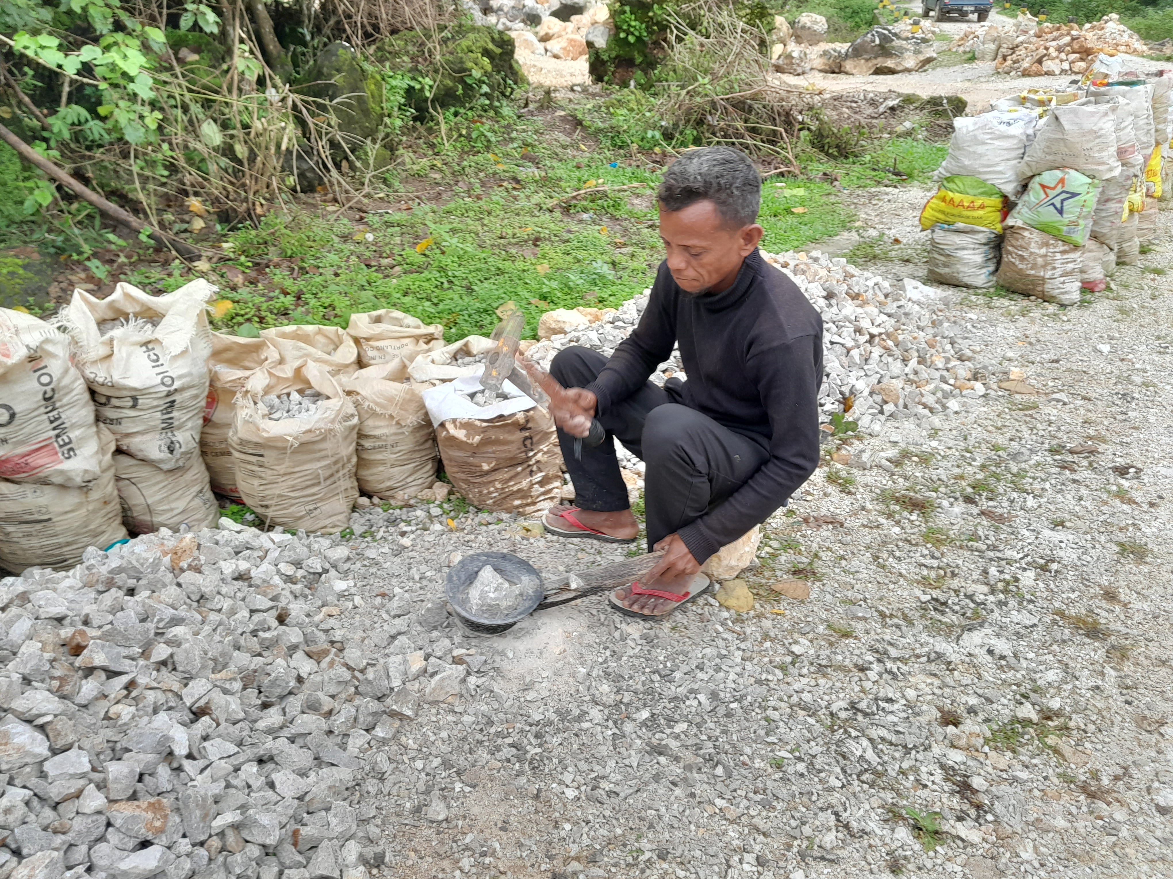 In this post, we will show you some of the locals supplying the stone and an update on the walls of the building being built. They are all working towards the roof being placed prior to the wet season commencing in October. It is good to see so many locals gaining employment through the building of this long awaited mission house.