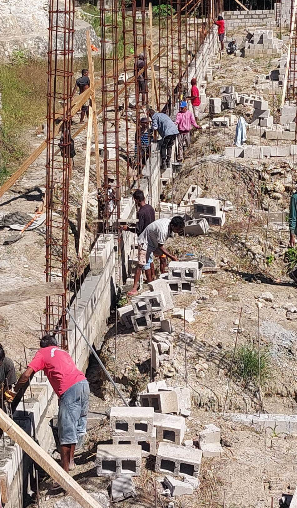 eight months, the local labour of 45 workers from the village is in full swing and doing a fine job of the building. The building of the mission house has provided other unexpected benefits to the local people of the village. A whole rock breaking industry has evolved out of the building of the mission house, with the locals supplying tonnes of stone for the foundations of the building.