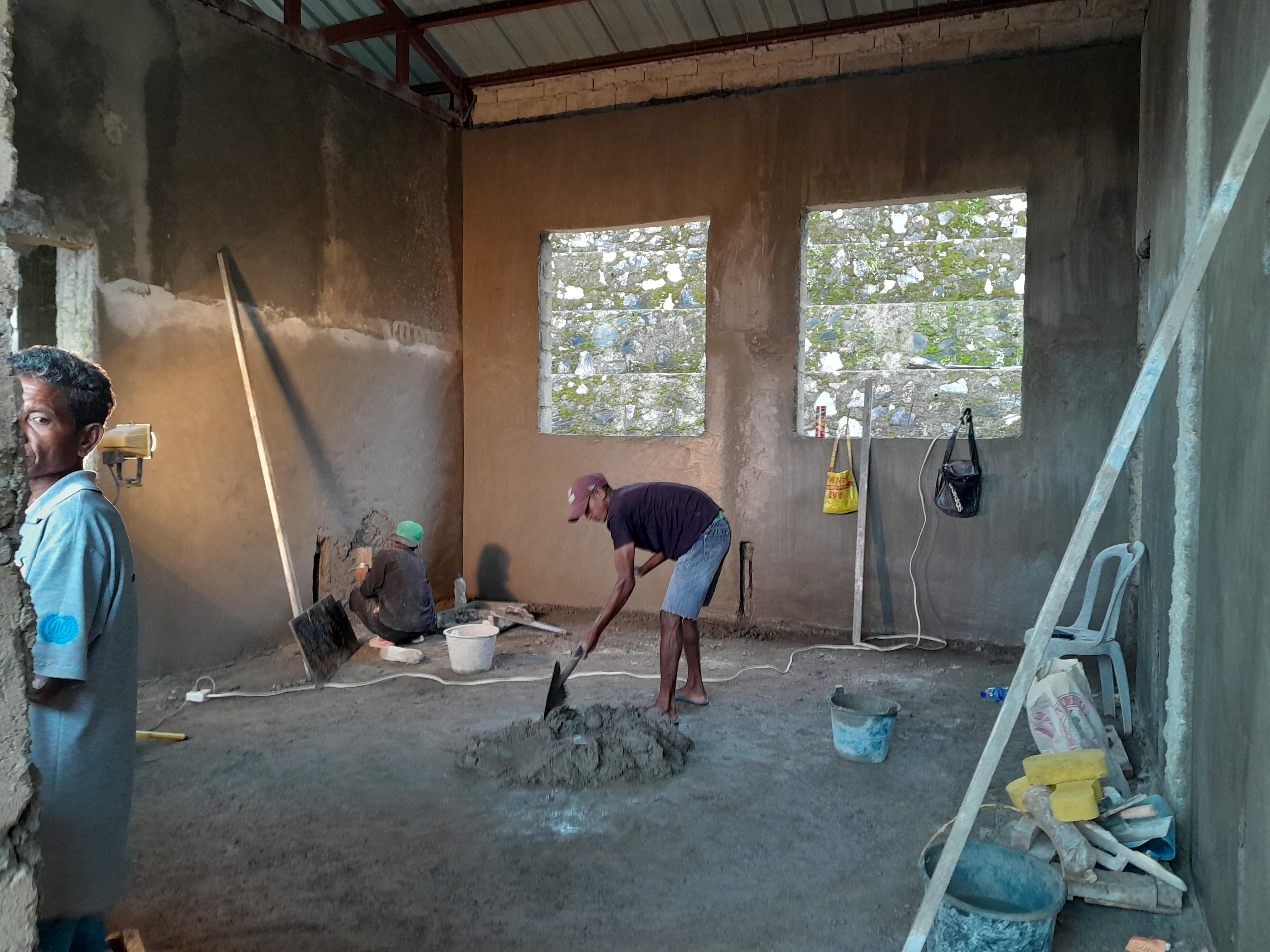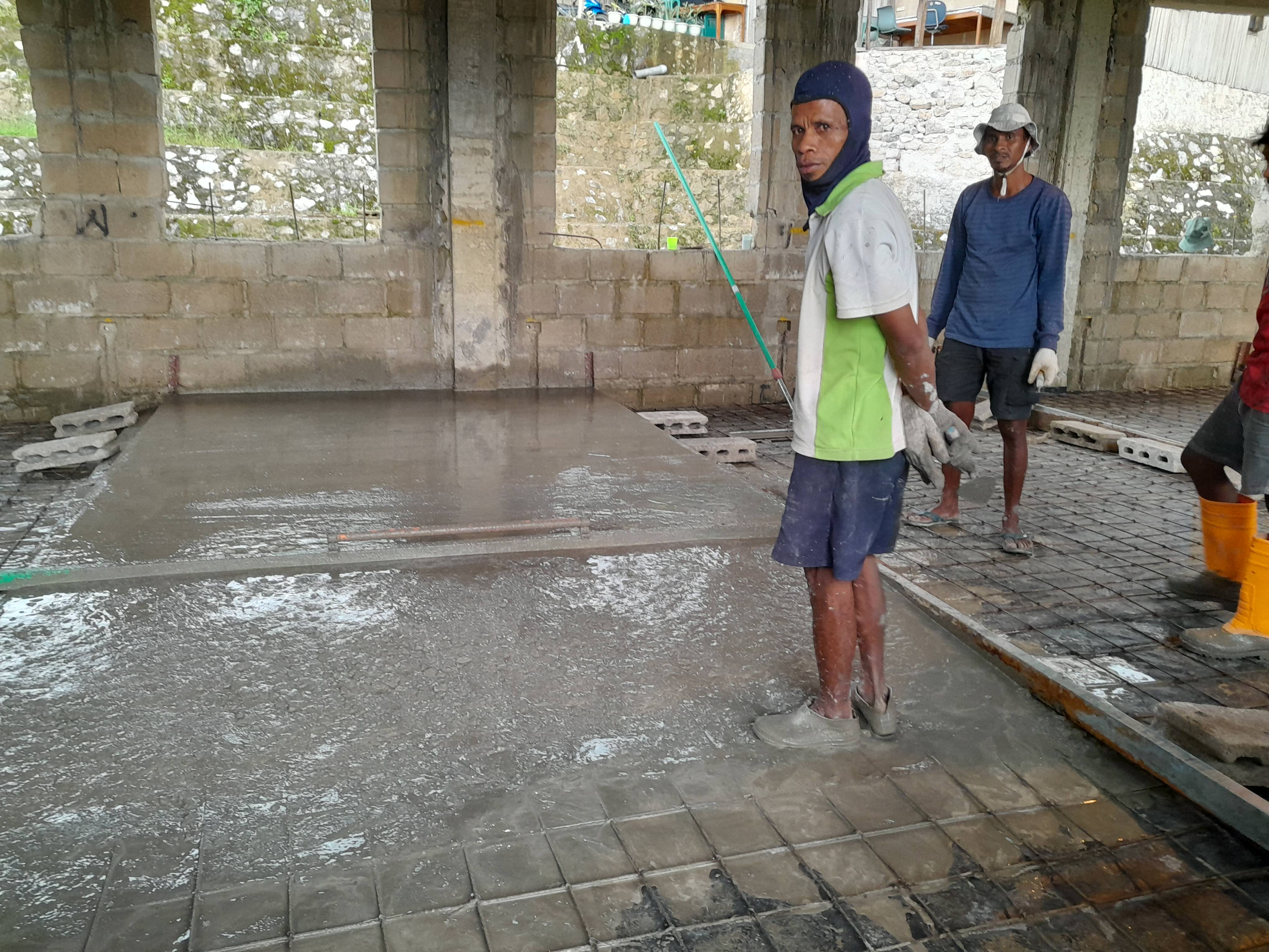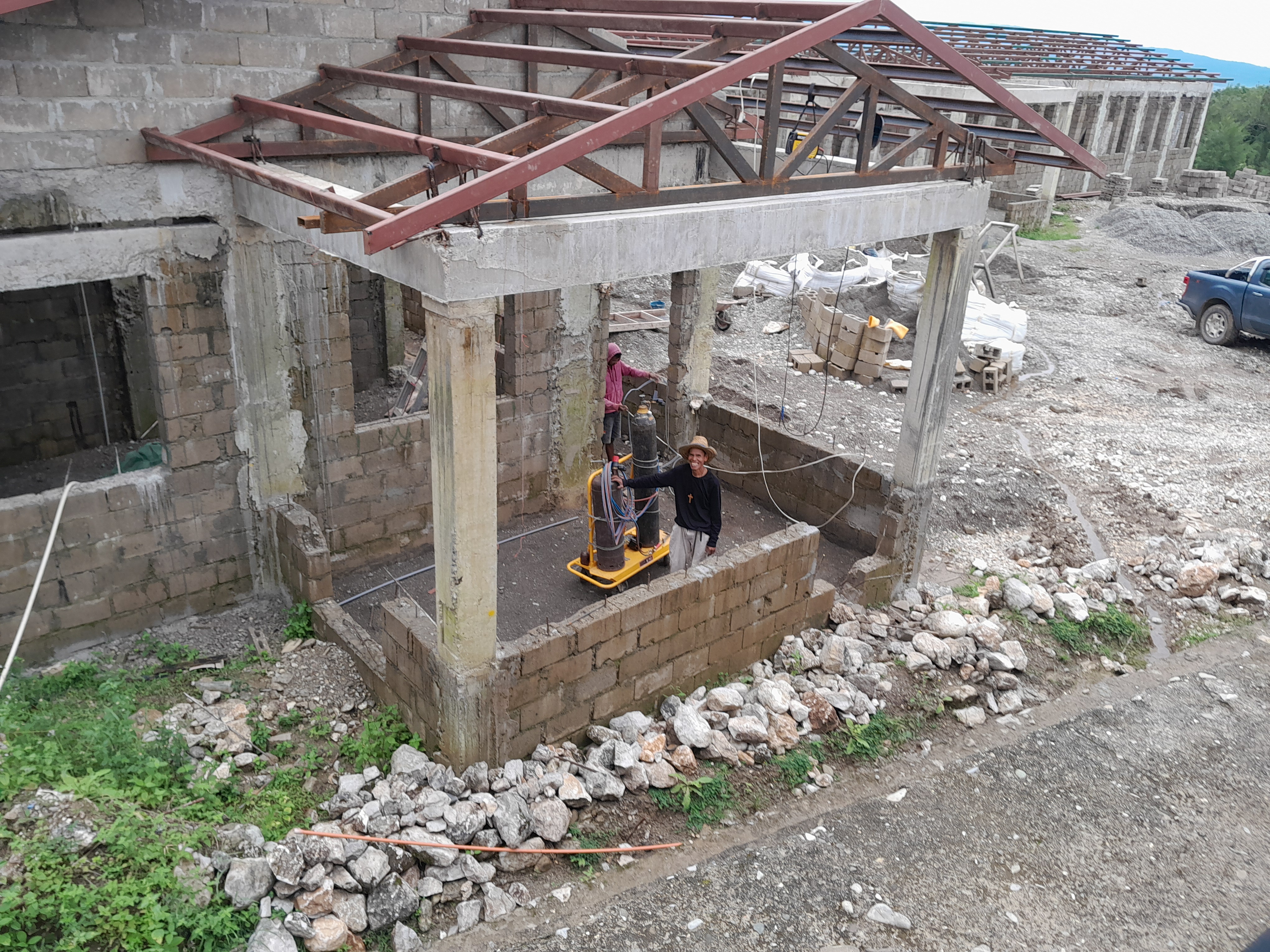 The roof is almost completed and the concreting has commenced in some of the rooms, with some rendering also being applied to some rooms. Once the whole roof is fitted, this will allow further work to be undertaken without the work being disrupted by rain, which still is expected for the next month or so. The plumbing is due to be fitted within the next month by an Australian plumber, Tony Harris from Brisbane, who has kindly provided much help with the plumbing projects.