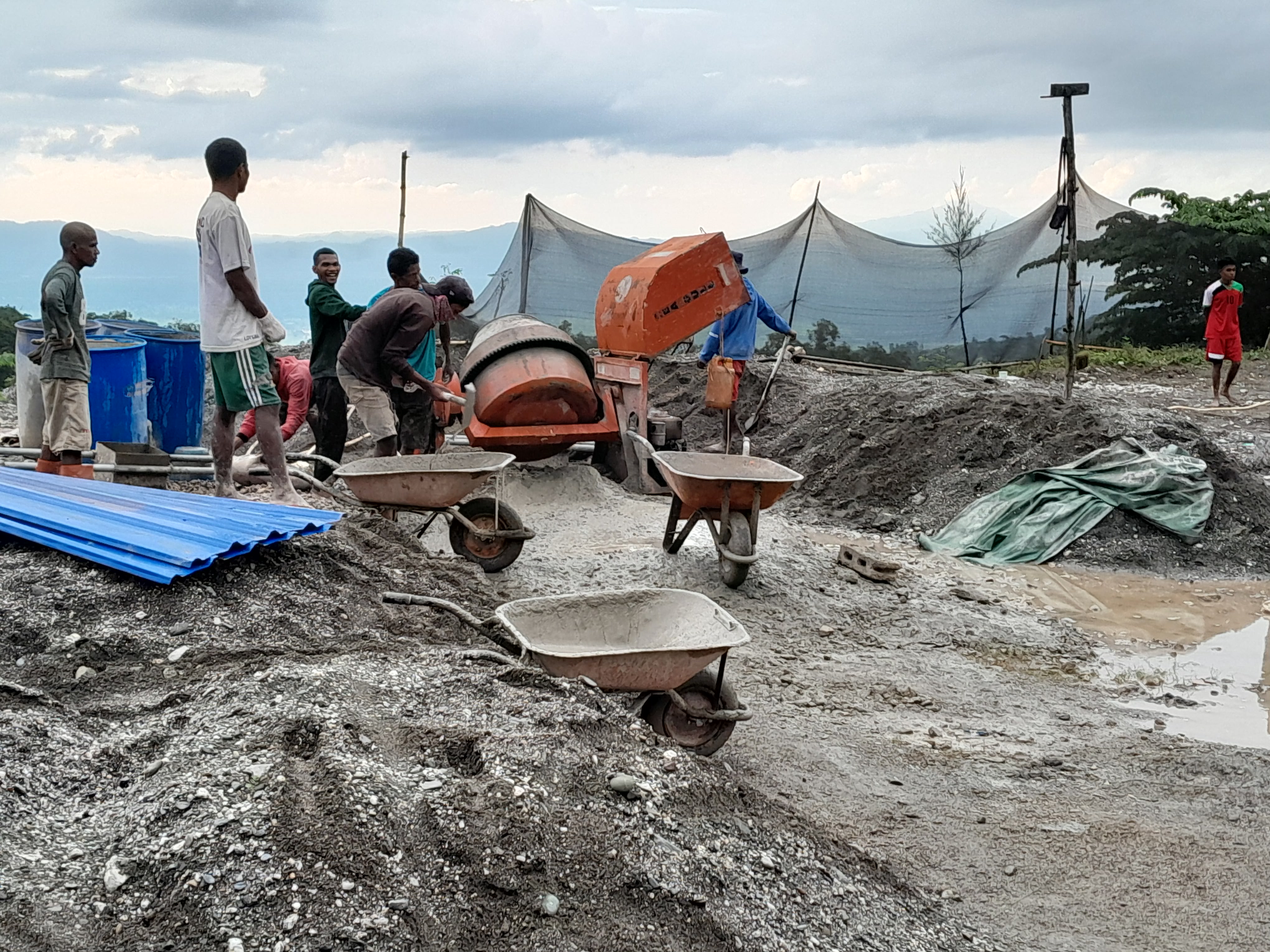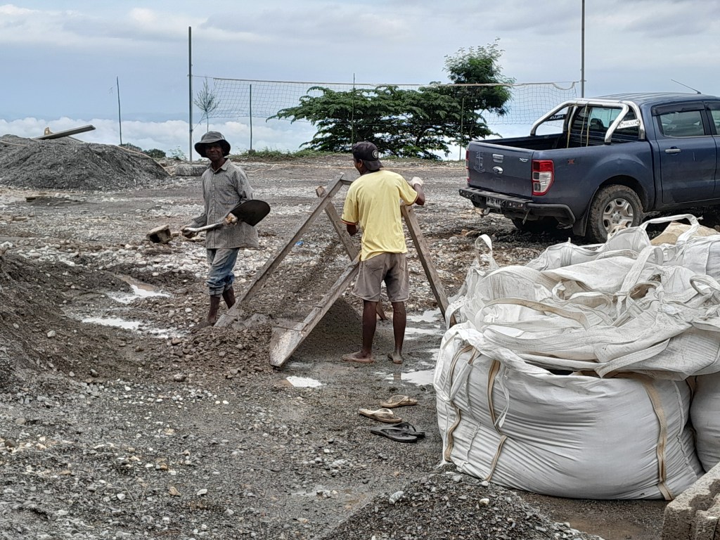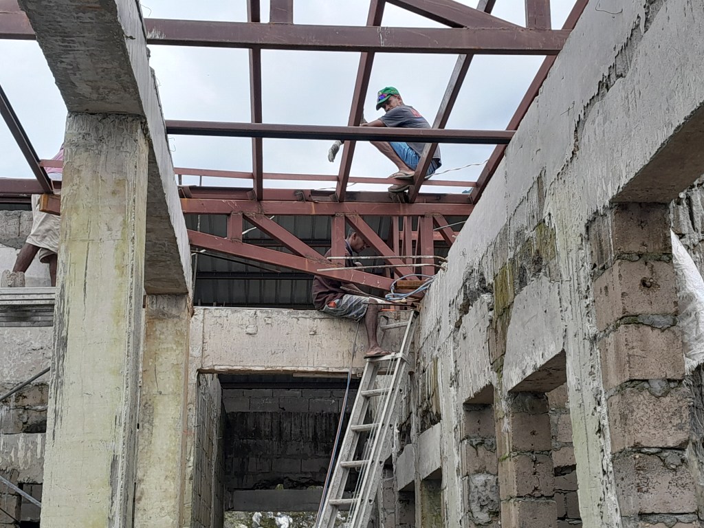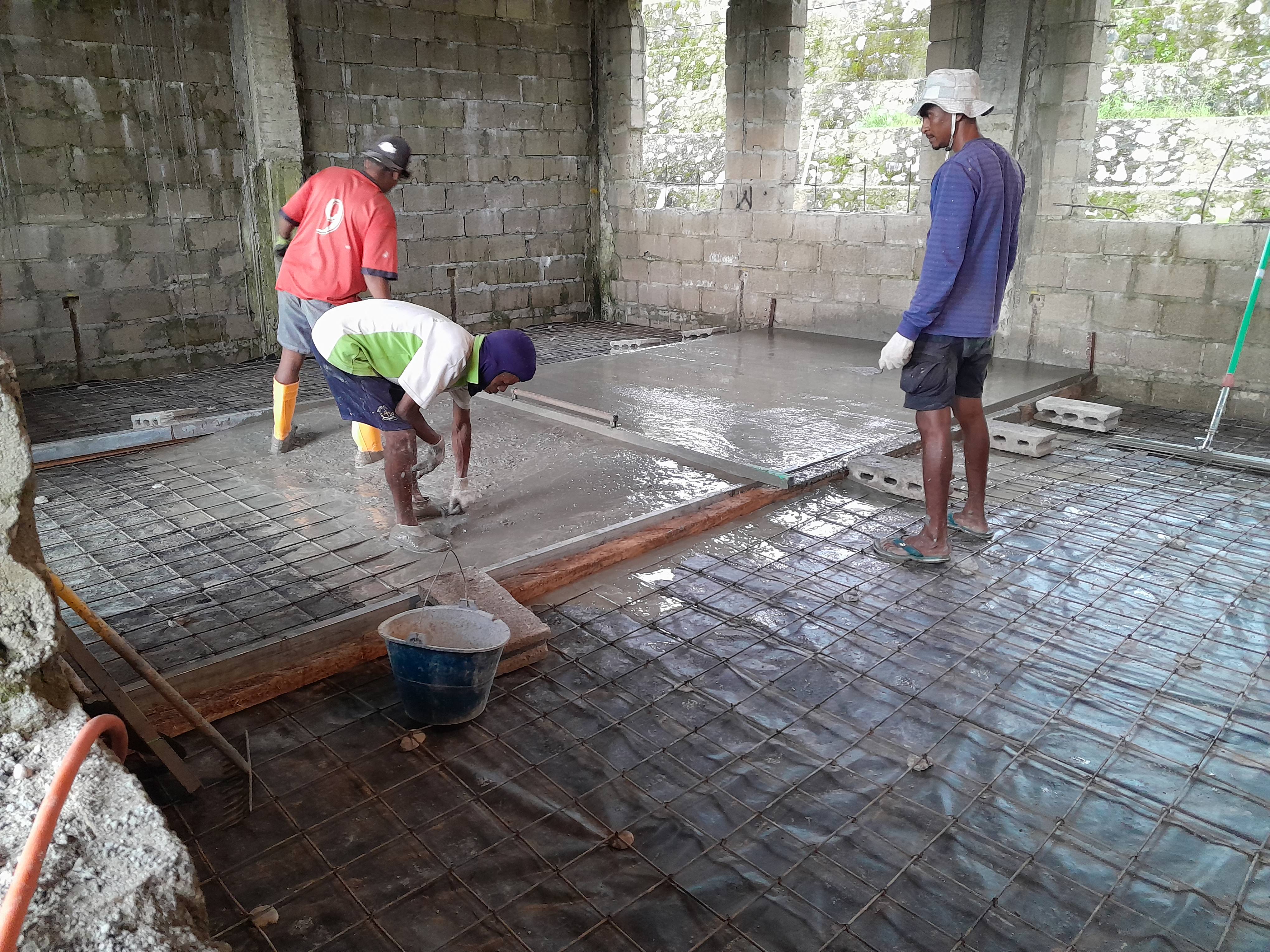 The roof is almost completed and the concreting has commenced in some of the rooms, with some rendering also being applied to some rooms. Once the whole roof is fitted, this will allow further work to be undertaken without the work being disrupted by rain, which still is expected for the next month or so. The plumbing is due to be fitted within the next month by an Australian plumber, Tony Harris from Brisbane, who has kindly provided much help with the plumbing projects.