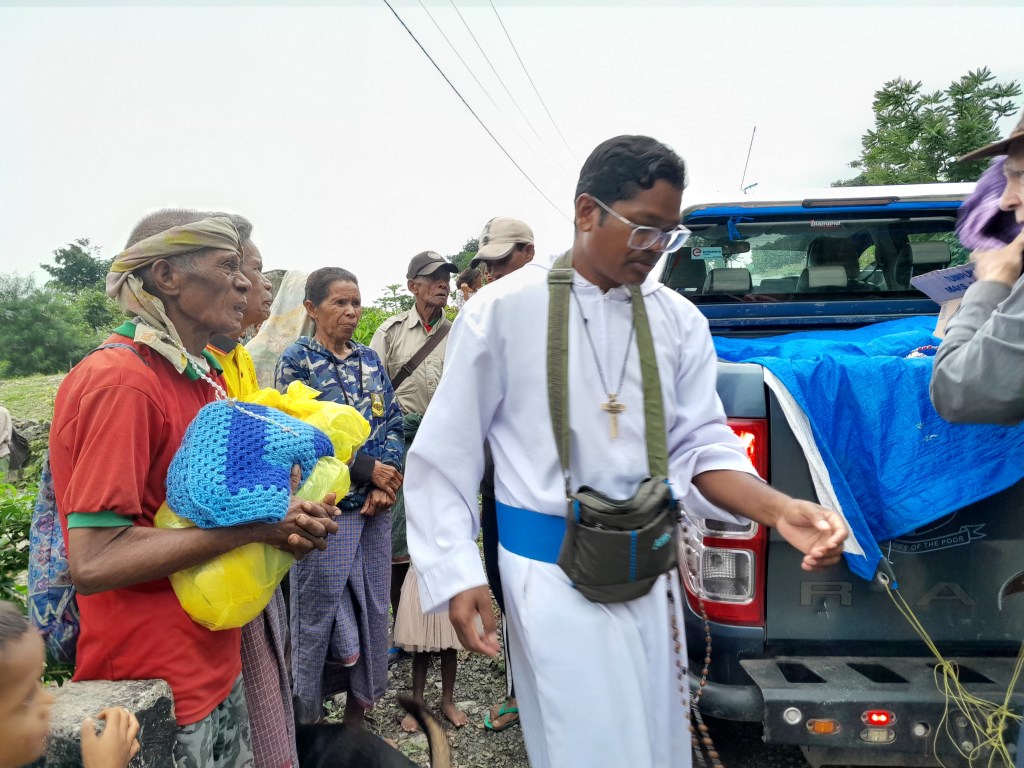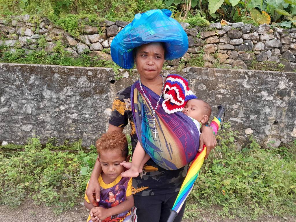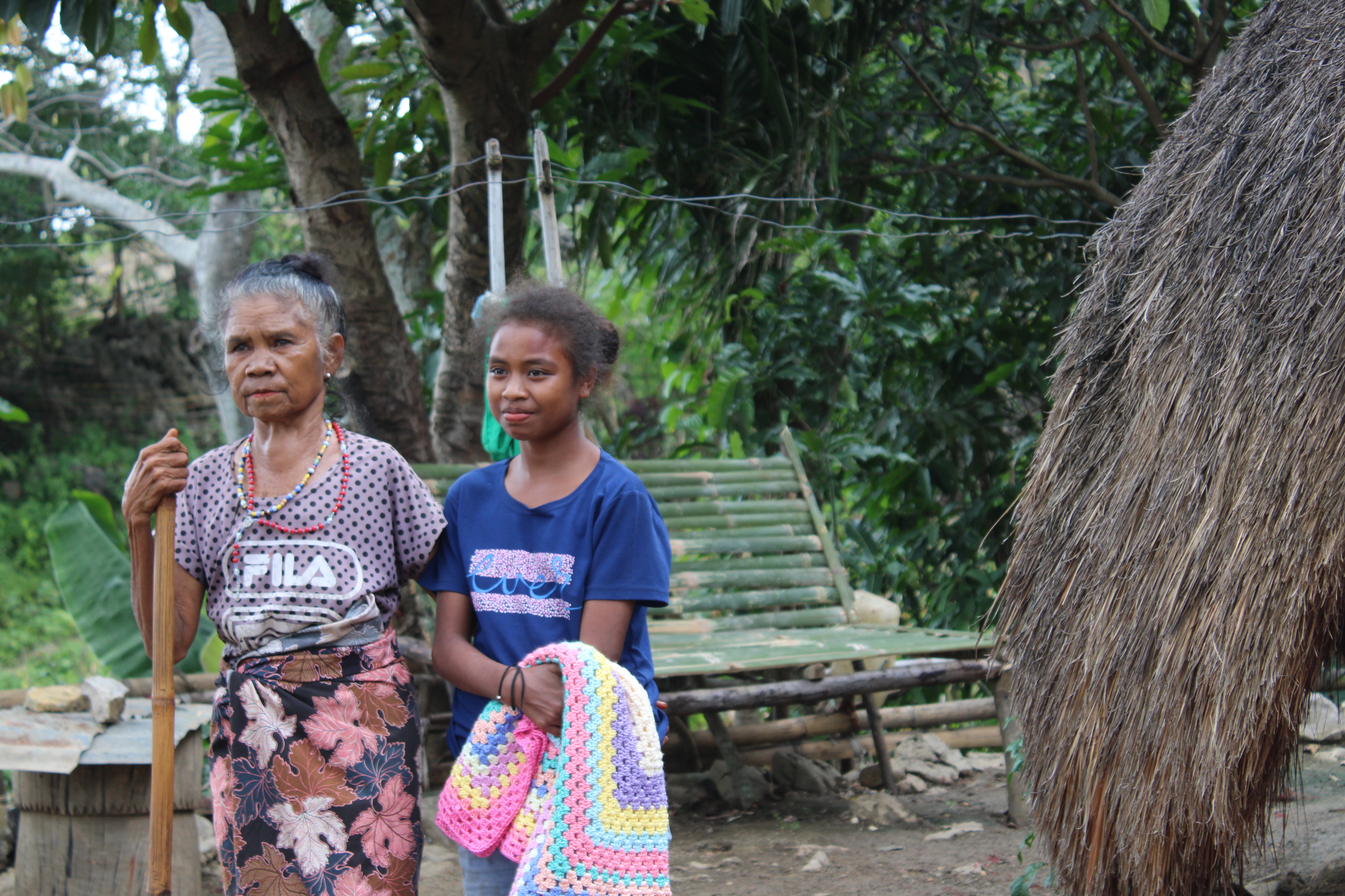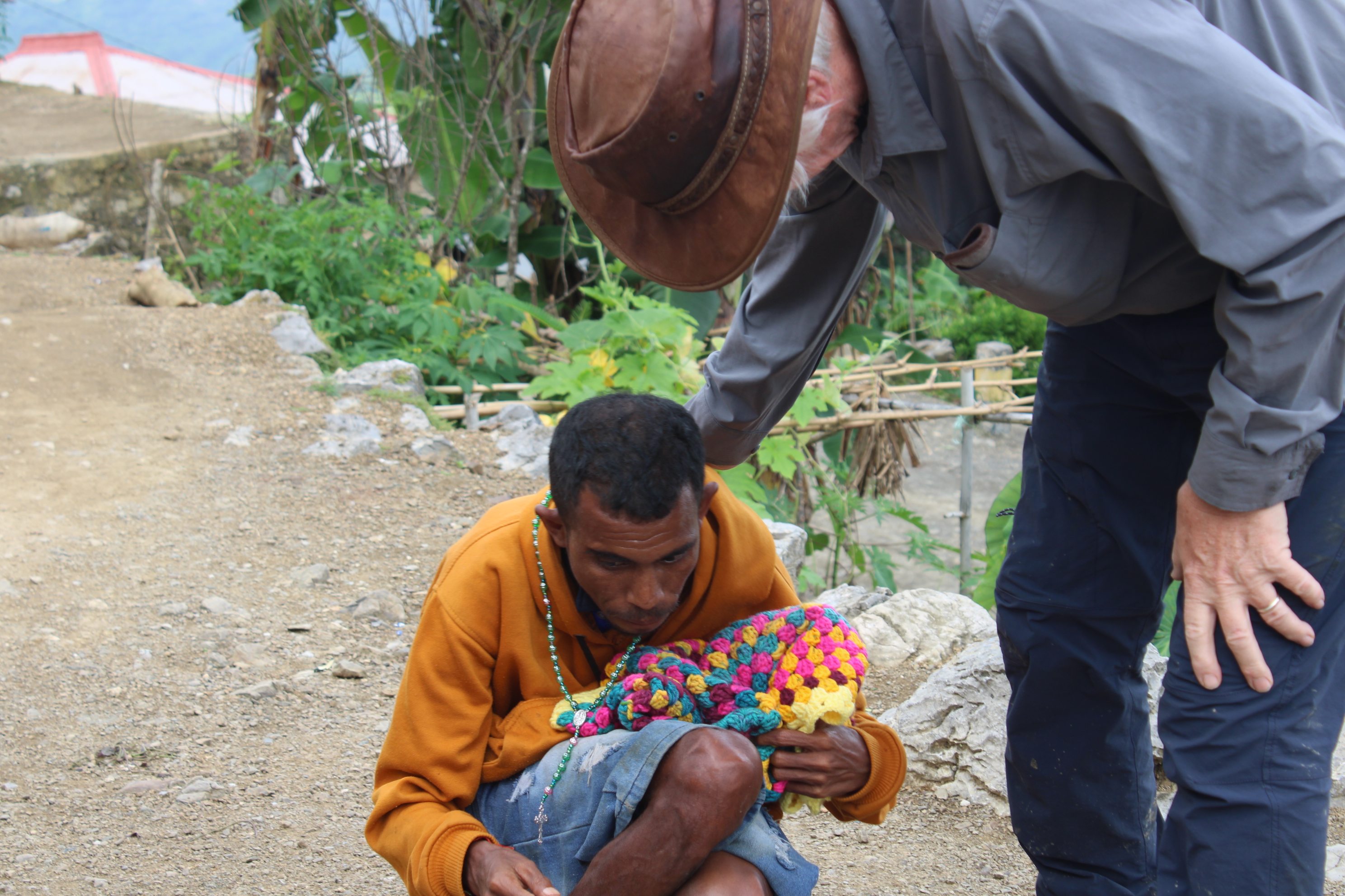Br Bima was our driver. Together with the food parcels they distributed rosaries and home made blankets. These crocheted blankets were made by ladies of the Holy Family Parish, Indooroopilly. Additionally, a lady parishioner crocheted several jumpers for the young children of the village. Saburai village at 900 m above sea level does get cold during winter. The people really appreciated and loved the brightly coloured blankets.
