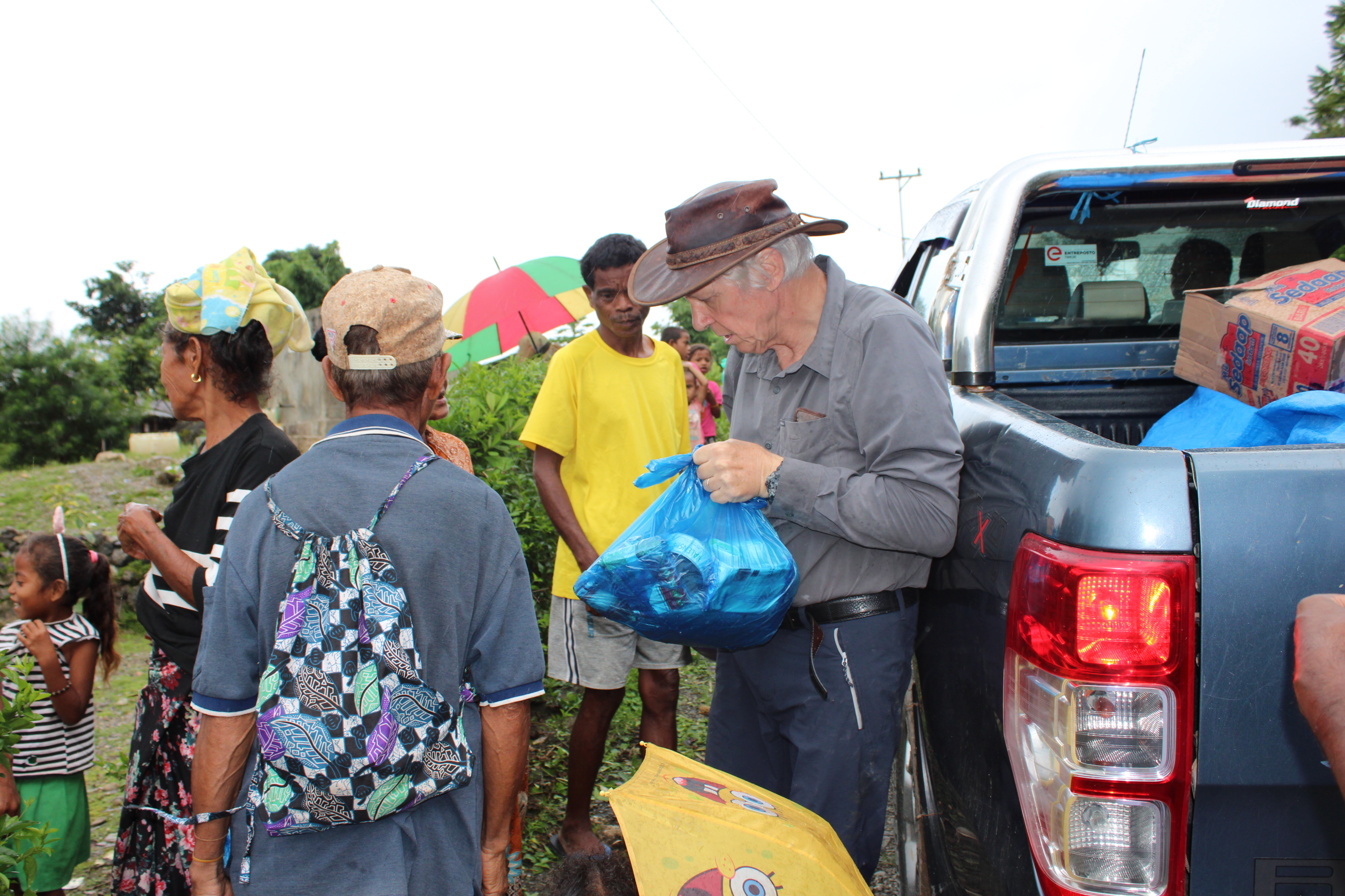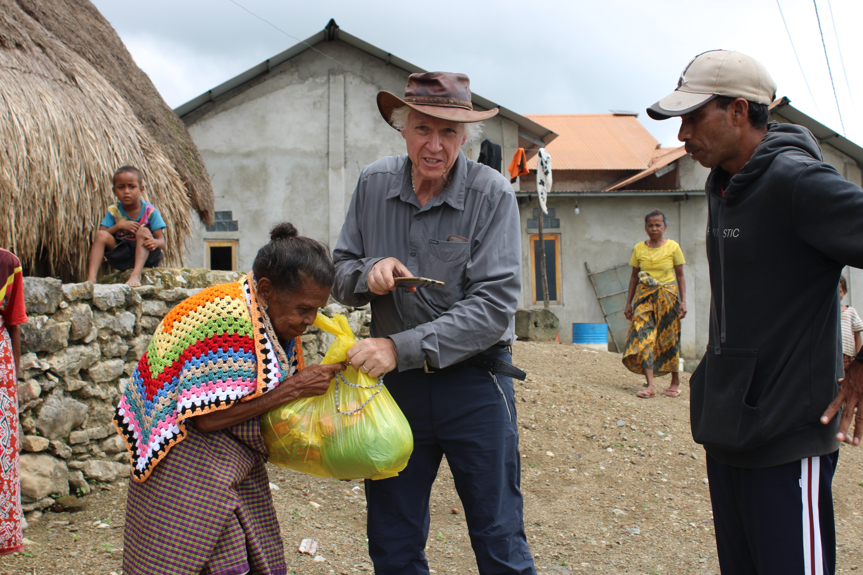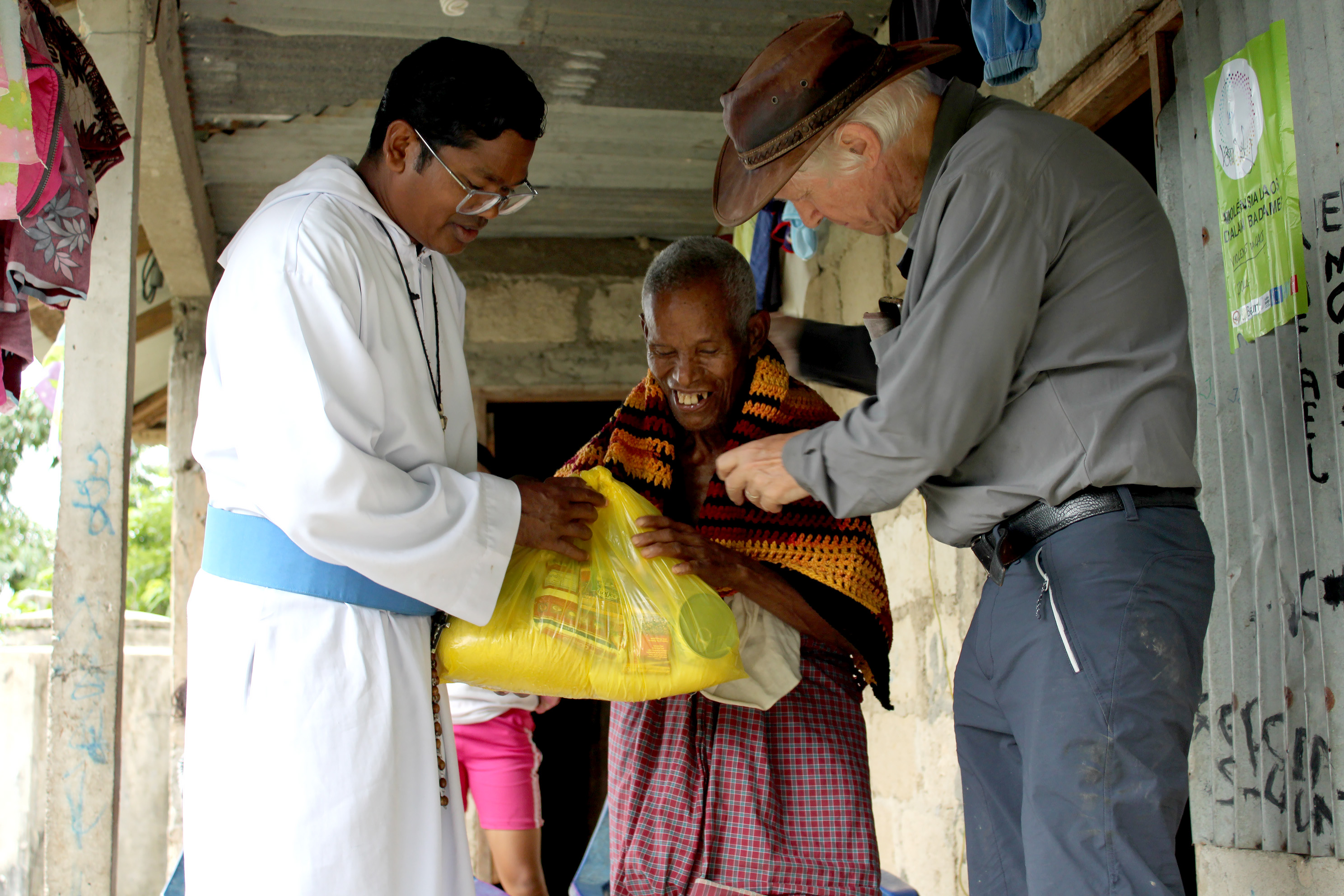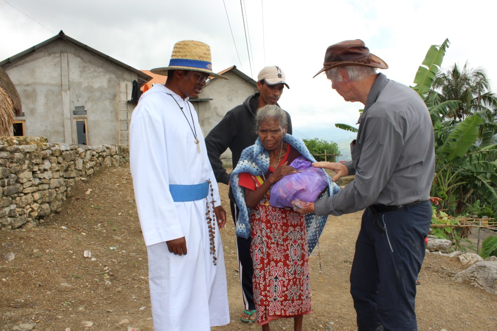 During Trevor’s visit to the Timor Leste Mission, Br Francis organised, with the help from the local chief of the far end of the village, to distribute more food parcels to the 25 leper households.