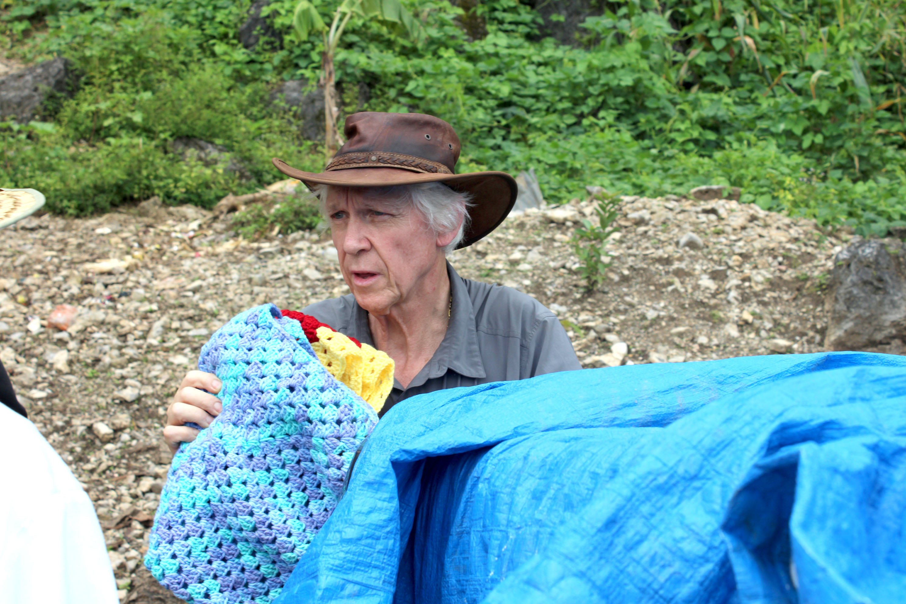 Our featured image shows an elderly lady receiving a food parcel with a blanket and you will notice that she is using a large nail in her hair as a hair pin. The people of the village have very little. Our next project is to, during Trevor’s next visit, take up hair clips for the elderly ladies, and continue with the blankets as the need is great.