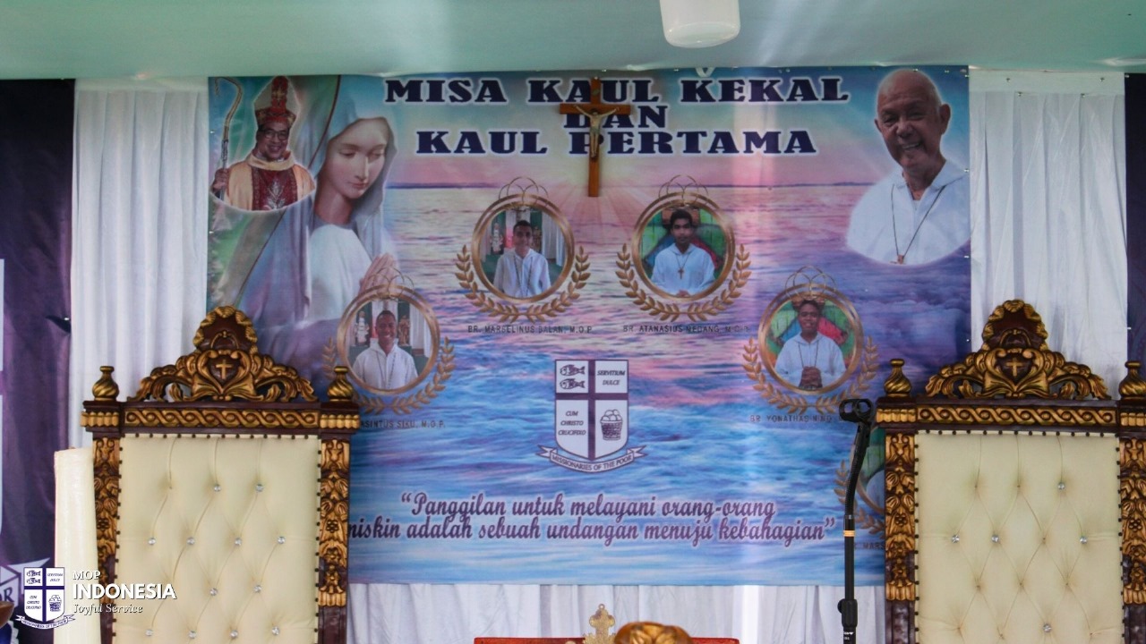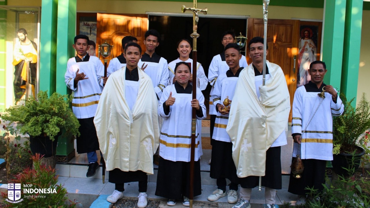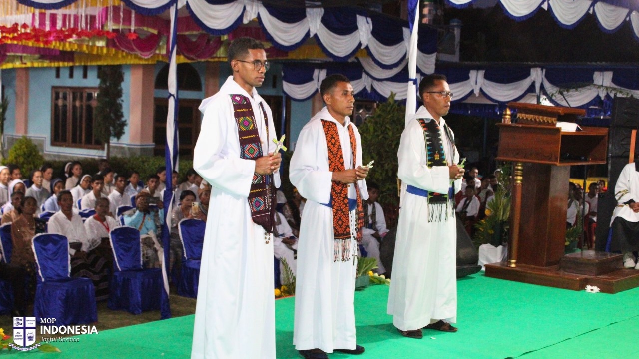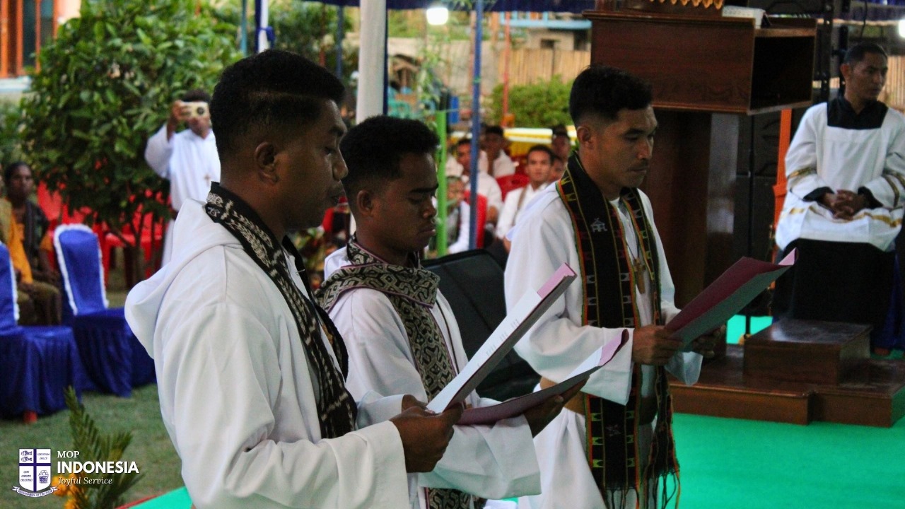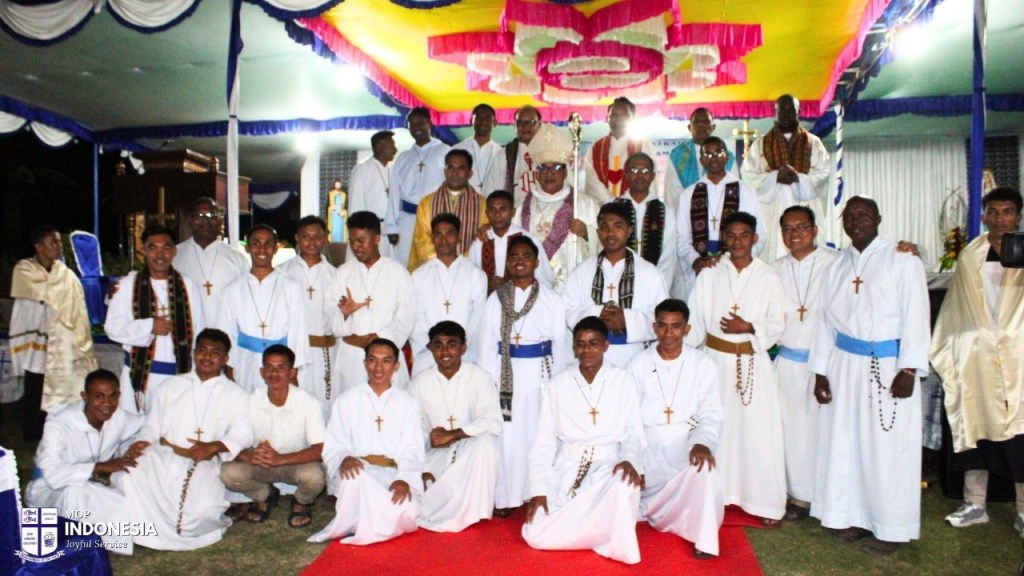 novices made their final profession of vows and three postulants made their first profession of vows at the Flores mission in Labuan Bajo. It was a very big celebration with many family members attending, with entertainment to celebrate and congratulations are conveyed to the six young men giving their lives to serve the poor with joy.