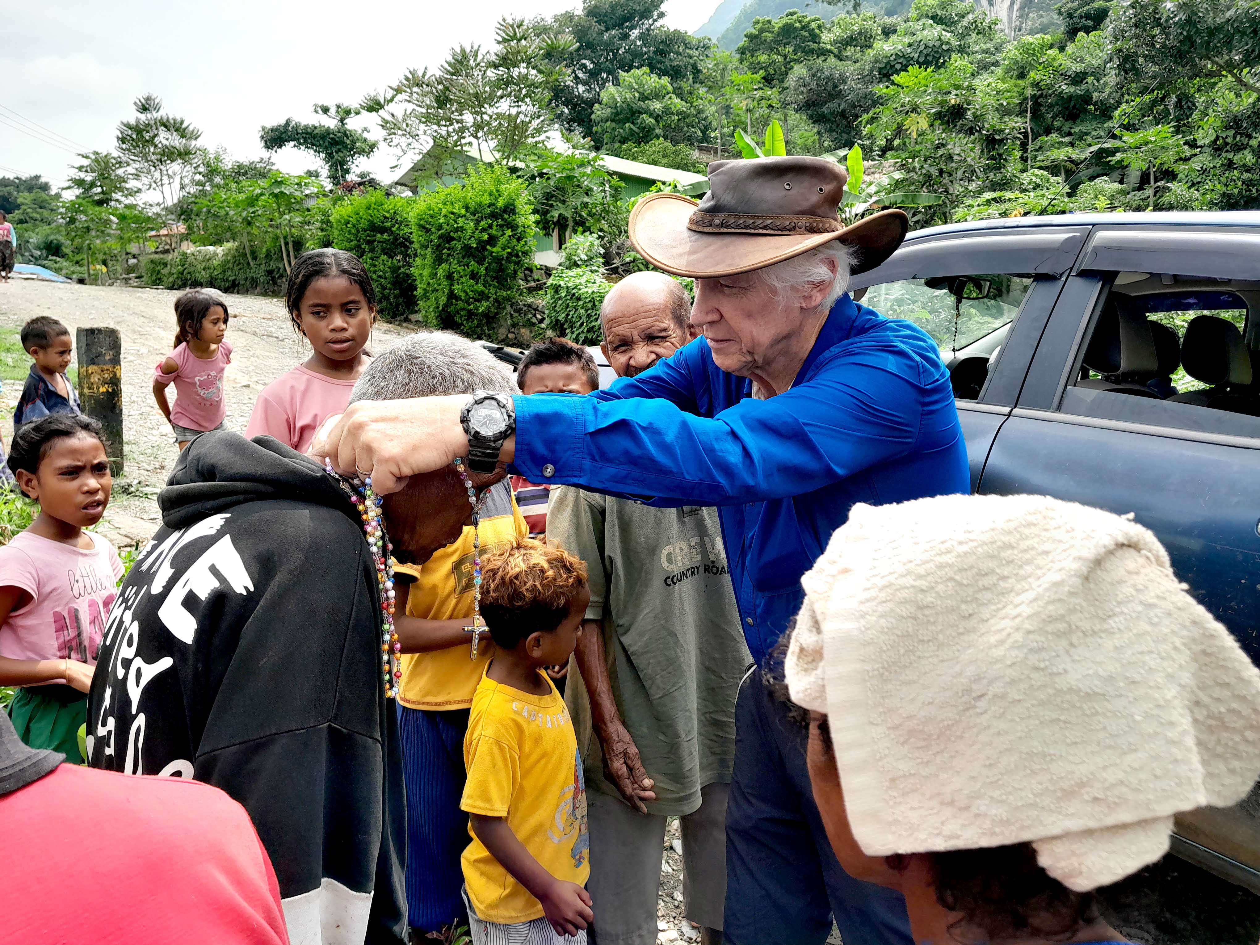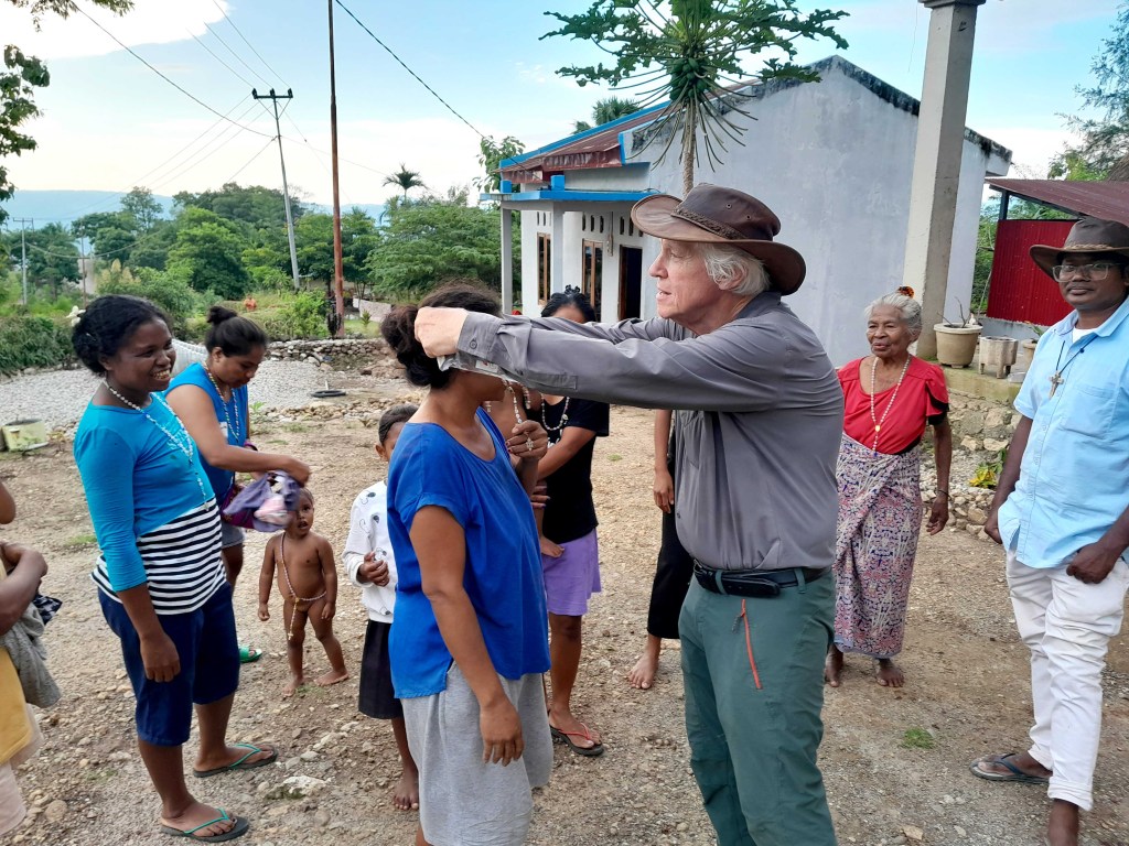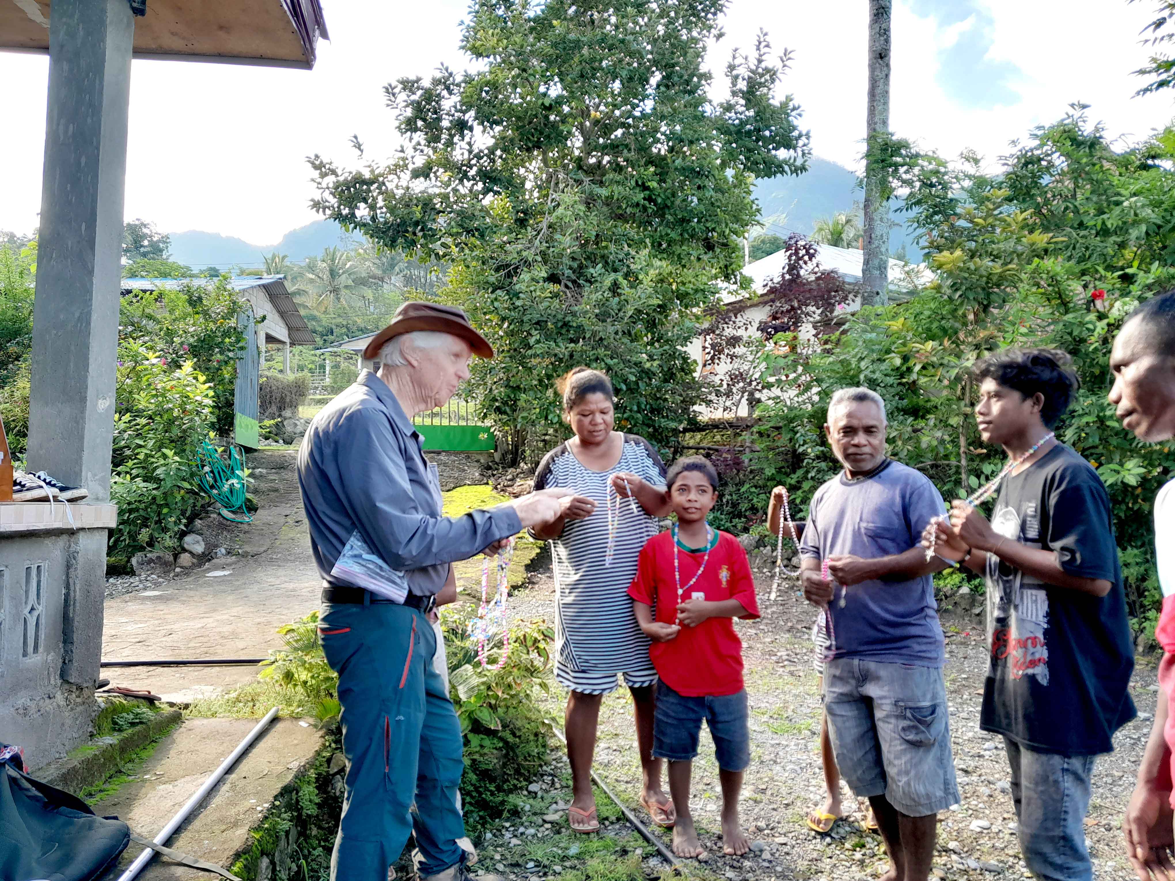 This year in February, Trevor visited the Saburai mission, and while there distributed rosaries to the very poor and the leprosy community at Saburai village. This has become a regular annual event and this year another 200 rosaries were distributed. The people of the village really appreciate receiving the rosaries and very much look forward to receiving them once they know that a visitor from Australia has arrived. As usual, all the children would love to receive a rosary as well but we just cannot bring up enough for distribution to all.
